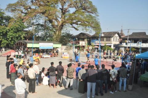 ကချင်ပြည်နယ်၊ မိုးညှင်းခရိုင်၊ မိုးကောင်းမြို့၌ မြို့နယ်စီမံခန့်ခွဲရေးနှင့်အုပ်ချုပ်ရေးကော်မတီမှ ကြီးမှူးကျင်းပသည့် မြို့နယ်အုပ်ချုပ်ရေးမှူးဖလား ပိုက်ကျော်ခြင်းပြိုင်ပွဲ ဗိုလ်လုပွဲနှင့် ဆုချီးမြှင့်ပွဲကို အရှေ့ရပ်ကွက်ရှိ အားကစားကွင်း၌ ဖေဖော်ဝါရီ(၁၂)ရက် နံနက်(၉)နာရီတွင် ကျင်းပခဲ့သည်။