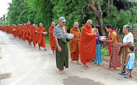 သီတဂူဗုဒ္ဓတက္ကသိုလ်(ကျွန်းလှ) စာချ၊ စာသင်သံဃာတော်များအား ဆွမ်းဆန်စိမ်းလောင်းလှူ
