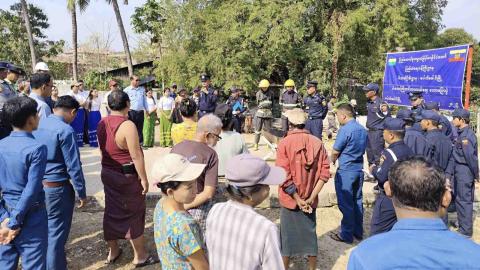 ပေါက်ခေါင်းမြို့ မြို့မဈေးကြီး မီးဘေးလုံခြုံရေး အသိပညာပေးဟောပြောခြင်းနှင့် မီးငြှိမ်းသတ်မှု သရုပ်ပြဇာတ်တိုက်လေ့ကျင့်
