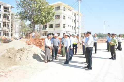 နေပြည်တော်ကောင်စီဥက္ကဋ္ဌ ဦးသန်းထွန်းဦး ငလျင်ဘေးကြောင့် ထိခိုက်ပျက်စီးခဲ့သော ဝန်ထမ်းအိမ်ရာများ အသစ်ဆောက်လုပ်နေမှုအခြေအနေများအား ကြည့်ရှုစစ်ဆေး