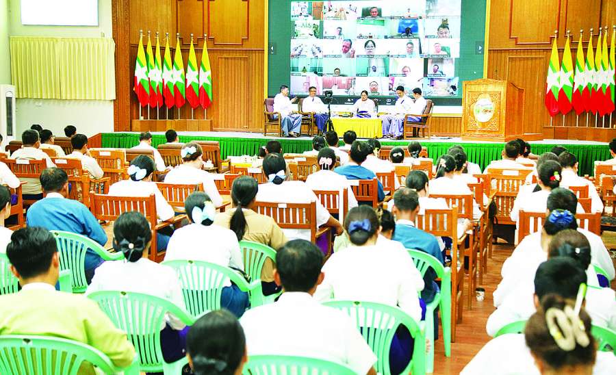 အပူဒဏ်အန္တရာယ်နှင့်ပတ်သက်သော ကျန်းမာရေးပြဿနာများ ကာကွယ်ကုသရေးညှိနှိုင်းအစည်းအဝေးကို ယနေ့မွန်းလွဲပိုင်းတွင် Semi Virtual စနစ်ဖြင့်ကျင်းပရာ ကျန်းမာရေးဝန်ကြီးဌာန ဒုတိယဝန်ကြီး ဒေါက်တာအေးထွန်း၊ မကွေးတိုင်းဒေသကြီး၊ ပဲခူးတိုင်း