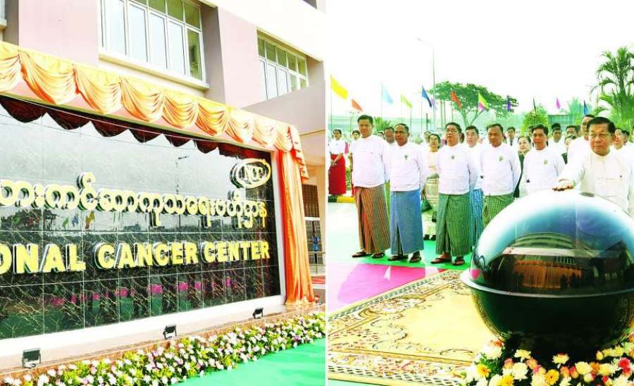 ပြည်ထောင်စုသမ္မတမြန်မာနိုင်ငံတော် ယာယီသမ္မတ နိုင်ငံတော်လုံခြုံရေးနှင့်အေးချမ်းသာယာရေးကော်မရှင်ဥက္ကဋ္ဌ ဗိုလ်ချုပ်မှူးကြီး မင်းအောင်လှိုင် အမျိုးသားကင်ဆာကုသရေးဗဟိုဌာန (National Cancer Center - NCC) ဖွင့်ပွဲအခမ်းအနားသို့ တက်ရောက်ချီးမြှင့်