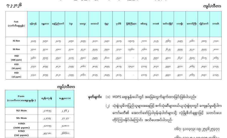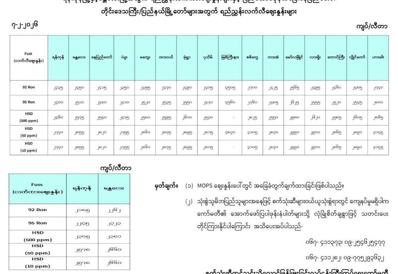 ရန်ကုန်မြို့နှင့် မန္တလေးမြို့အတွက် ရည်ညွှန်းလက်ကားဈေးနှုန်းများနှင့် ပြည်ထောင်စုနယ်မြေ နေပြည်တော်၊ တိုင်းဒေသကြီး/ ပြည်နယ် မြို့တော်များအတွက် ရည်ညွှန်းလက်လီဈေးနှုန်းများ
