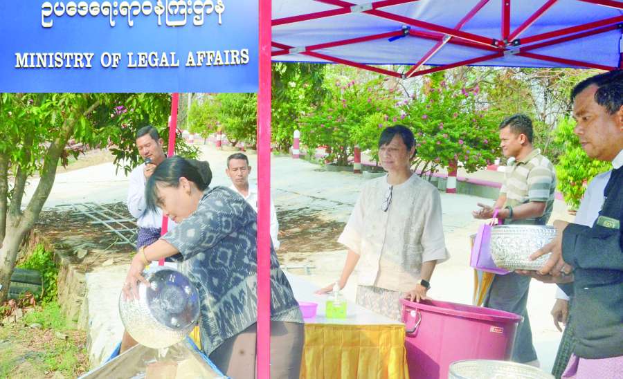 ဥပဒေရေးရာဝန်ကြီးဌာန ဝန်ထမ်းမိသားစုများ ၏ မြန်မာသက္ကရာဇ် ၁၃၈၈ ခုနှစ် မြန်မာနှစ်ဆန်းတစ်ရက်နေ့ ဇီဝိတဒါနအဖြစ် ငါးလွှတ်ပွဲအခမ်းအနားကို ယနေ့ညနေပိုင်းတွင် နေပြည်တော်ရှိ ဥပဒေရေးရာဝန်ကြီးဌာန ရုံးရှေ့တစ်ဖက်ပိတ်လျှိုပိတ်ဆည်၌ကျင်းပရာ ပြည်ထောင်စုဝန်ကြီးနှင့် ပြည်ထောင်စုရှေ့နေချုပ် ဒေါက်တာသီတာဦး၊ ဒုတိယဝန်ကြီးနှင့် ဒုတိယရှေ့နေချုပ် ဒေါက်တာထိန်လင်းဦး၊ အမြဲတမ်းအတွင်းဝန်နှင့် ဦးစီးဌာနများမှ ညွှန်ကြားရေးမှူးချုပ်များ၊ ဒုတိယညွှန်ကြားရေးမှူးချုပ်များနှင့် အရာထမ်း၊ အမှုထမ်းများ တက်ရောက်ကြသည်။