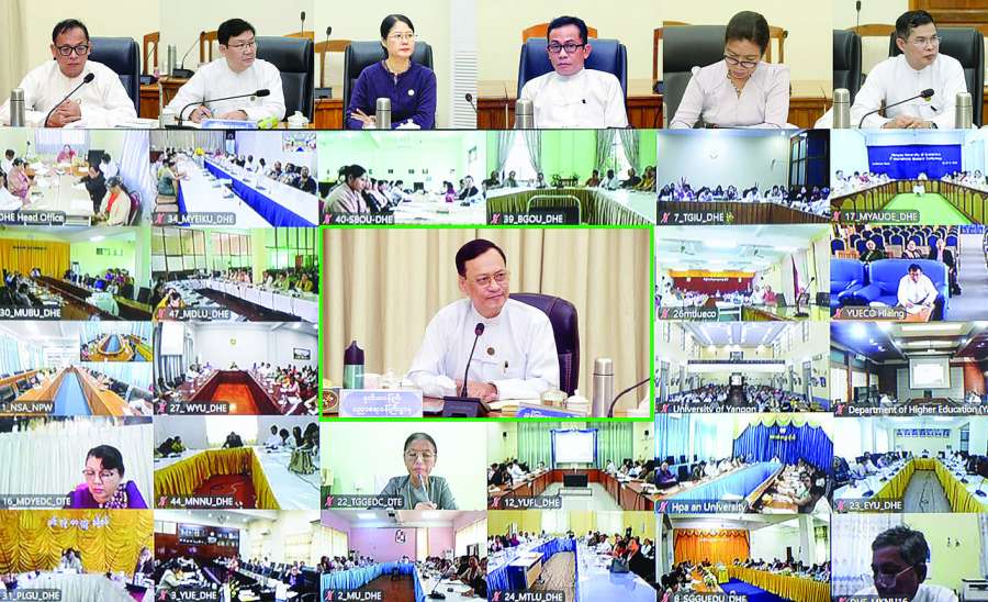 သိပ္ပံပွဲတော်(Science Festival)ကျင်းပရေးနှင့် တက္ကသိုလ်ဝင်စာမေးပွဲမအောင်မြင်သူများအတွက် အလုပ်အကိုင်ရရှိရေး အထောက်အကူပြုအတတ်ပညာကျွမ်းကျင်မှု (Skilled Labour) သင်တန်းများဖွင့်လှစ်ရေး ညှိနှိုင်းအစည်းအဝေးကို ယမန်နေ့မွန်းလွဲပိုင်းတွင် နေပြည်တော်ပညာရေးဝန်ကြီးဌာန ရုံးအမှတ်(၁၃)ရှိ အစည်းအဝေးခန်းမ၌ ကျင်းပသည်။