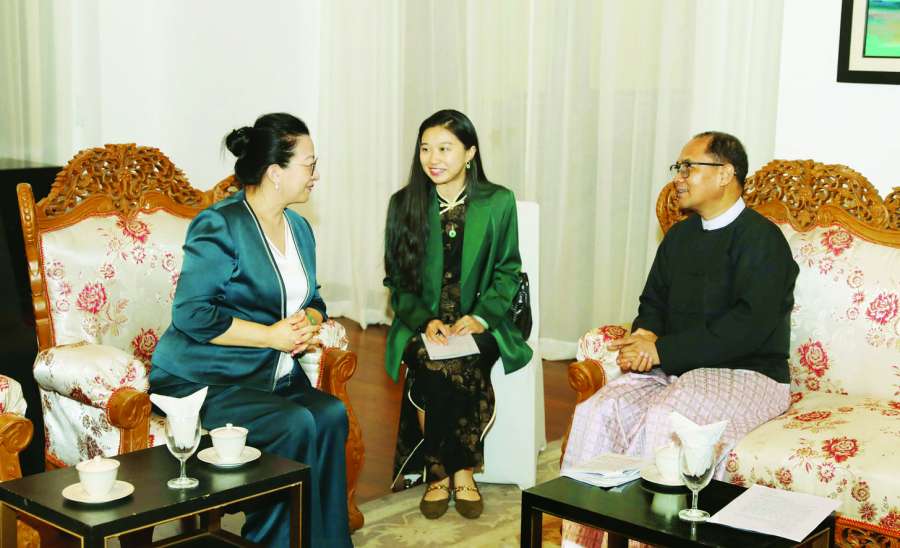 နိုင်ငံခြားရေးဝန်ကြီးဌာန ပြည်ထောင်စုဝန်ကြီး ဦးတင်မောင်ဆွေသည် နိုင်ငံတော်သမ္မတ ကတိသစ္စာပြုခြင်းနှင့် စတင်တာဝန်ထမ်းဆောင်ခြင်းအခမ်းအနားသို့ တက်ရောက်လာသည့် မြန်မာနိုင်ငံဆိုင်ရာ တရုတ်ပြည်သူ့သမ္မတနိုင်ငံသံအမတ်ကြီး မစ္စမာကျား၊