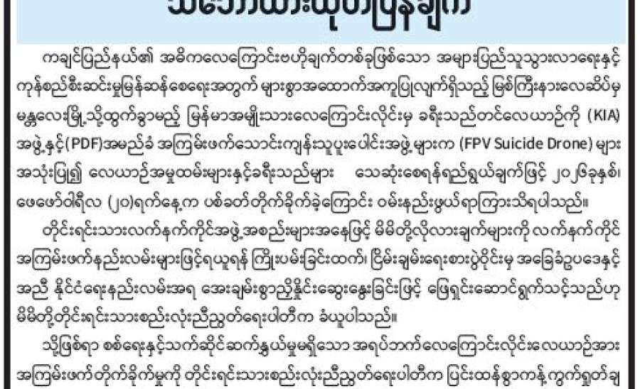Feb 08, 2026ယခုအခါ လူငယ်အချို့တွင် PDF ဂိမ်းကစားခြင်း ခေတ်စားနေသည်။ PDF game ဟူသည် အကြမ်းဖက်အားပေး ဂိမ်းတစ်ခုဖြစ်သည်။ PDF လူငယ်များက IT အကူအညီရယူ၍ online ကြော်ငြာခြင်း၊ online ဂိမ်းကစားခြင်းသည် ၎င်းတို့၏ အကြမ်းဖက်လုပ်ငန်းများအတွက် အလှူငွေရှာခြင်း နည်းအမျိုးမျိုးအနက် တစ်ခုပင်ဖြစ်သည်။ PDF ဂိမ်းအသစ်တစ်ခုပြီး တစ်ခုထွက်၍ လူများများဆော့နိုင်ရန် အချင်းချင်းမျှဝေကြသည်။ အင်တာနက်ကဲ့သို့ဖြစ်ပြီး ပေးထားသည့် Link ကိုဖွင့်၍ VPN ခံကာ ဒေါင်းလုပ်ဆွဲဆော့ကြရသည့် လက်ကိုင်ဖုန်းဂိမ်း အမျိုးအစား တစ်ခုပင်ဖြစ်ပါသည်။