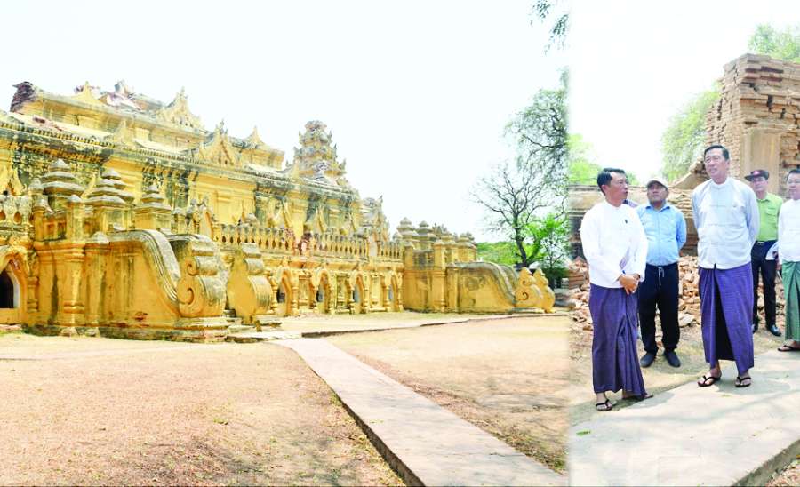 ဟိုတယ်၊ ခရီးသွားလာရေးနှင့် ယဉ်ကျေးမှုဝန်ကြီးဌာန ပြည်ထောင်စုဝန်ကြီး ဦးမောင်မြင့်သည် မန္တလေးတိုင်းဒေသကြီးဝန်ကြီးချုပ် ဦးမျိုးအောင်နှင့် တိုင်းဒေသကြီးဝန်ကြီးများ၊ ဝန်ကြီးဌာနမှ ညွှန်ကြားရေးမှူးချုပ်များ၊ တာဝန်ရှိသူများနှင့်အတူ ယနေ့နံနက်ပိုင်းတွင် တံတားဦးခရိုင် အင်းဝမြို့ဟောင်းရှိ ရှေးဟောင်း အဆောက်အအုံ၊ စေတီ၊ ပုထိုးများနှင့် မန္တလေးနန်းမြို့ရိုး ပြုပြင်ထိန်းသိမ်းနေမှုများကို ကြည့်ရှုစစ်ဆေးသည်။