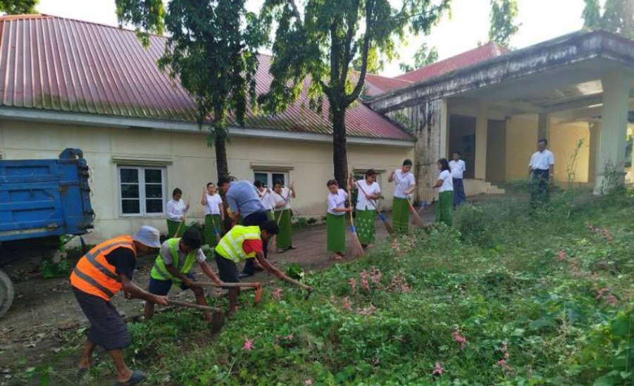 ၂၀၂၅-၂၀၂၆ ပညာသင်နှစ်တွင် ကျောင်းသား၊ ကျောင်းသူများ အဆင်ပြေချောမွေ့စွာ ပညာသင်ကြားနိုင်ရေးနှင့် စာသင်ကျောင်းများ ဥပဓိရုပ်ကောင်းမွန်စေရေးအတွက် တိုင်းဒေသကြီးနှင့် ပြည်နယ်အသီးသီးရှိ အခြေခံပညာကျောင်းများ၌ ကျောင်းပတ်ဝန်းကျင်သန့်ရှင်းသာယာလှပရေးအတွက် နယ်မြေခံတပ်မတော်သားများ၊ ဌာနဆိုင်ရာဝန်ထမ်းများ၊ လူမှုရေးအသင်းအဖွဲ့များနှင့် ဒေသခံပြည်သူများက စုပေါင်းသန့်ရှင်းရေးလုပ်ငန်းများ ဆောင်ရွက်လျက်ရှိသည်။
