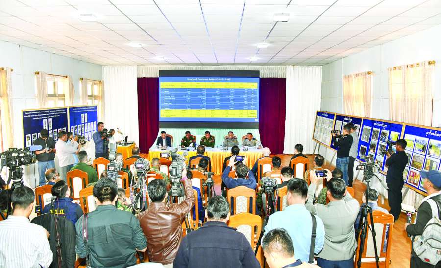 လူသားမျိုးနွယ်တစ်ခုလုံးကို လူညွှန့်တုံးပျက်စီးစေသည့် ဘိန်းဖြူ၊ မက်သ်အဖက်တမင်း (Methamphetamine)၊ မူးယစ်ဆေးဝါးနှင့်စိတ်ကိုပြောင်းလဲစေသည့် ဆေးဝါးများနှင့် မူးယစ်ဆေးဝါးများကို အဓိကချက်လုပ်သည့်နေရာဟု ယူဆသည့်နေရာများ၊ အွန်လိုင်းလိမ်လည်လောင်းကစားမှုများပြုလုပ်သည့်နေရာနှင့် အသုံးပြုသည့်ပစ္စည်းများကို လုံခြုံရေးတပ်ဖွဲ့ဝင်များပါဝင်သောပူးပေါင်းအဖွဲ့ဖြင့် ရှင်းလင်းဖော်ထုတ်ဖမ်းဆီးရမိသည့် သတင်းအား ဇန်နဝါရီ လ ၁၁ ရက်တွင် ထုတ်ပြန်ခဲ့ပြီးဖြစ်ပါသည်။