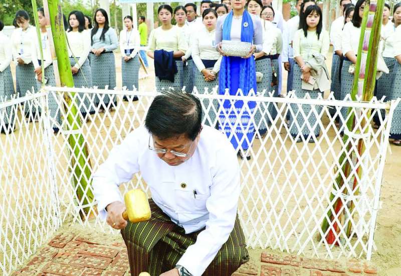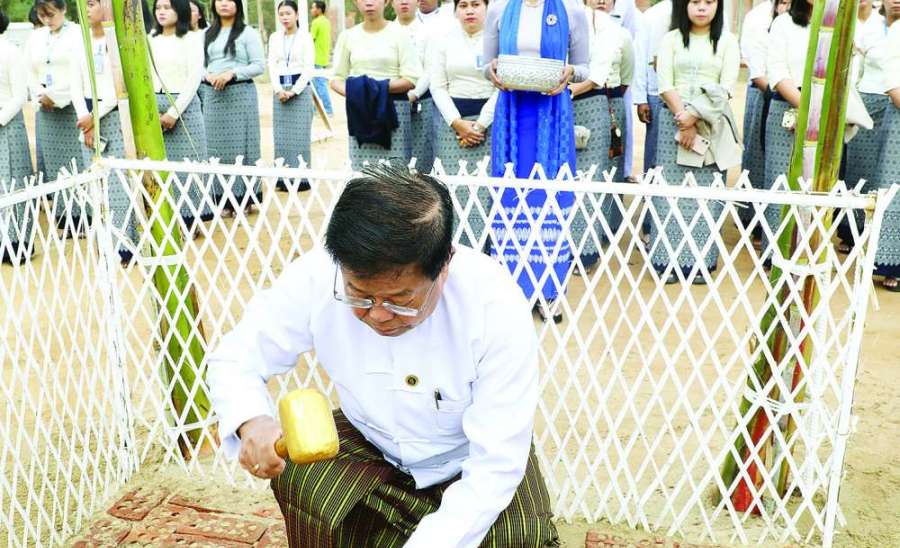 နိုင်ငံခြားရေးဝန်ကြီးဌာန မြန်မာသံတမန်သင်တန်းကျောင်းအဆောက်အအုံ ပန္နက်တင်မင်္ဂလာအခမ်းအနားကို ယနေ့ နံနက် ၈ နာရီတွင် နေပြည်တော်ရှိ နိုင်ငံခြားရေးဝန်ကြီးဌာန ပရိဝုဏ်၌ ကျင်းပသည်။