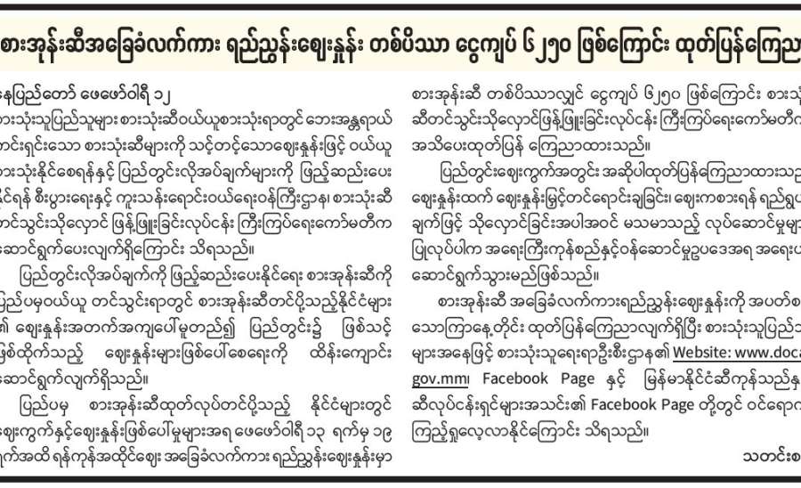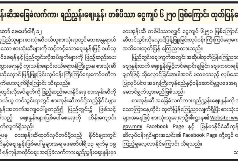 ရန်ကုန်မြို့နှင့် မန္တလေးမြို့အတွက် ရည်ညွှန်းလက်ကားဈေးနှုန်းများနှင့် ပြည်ထောင်စုနယ်မြေ နေပြည်တော်၊ တိုင်းဒေသကြီး/ပြည်နယ် မြို့တော်များအတွက် ရည်ညွှန်းလက်လီဈေးနှုန်းများ