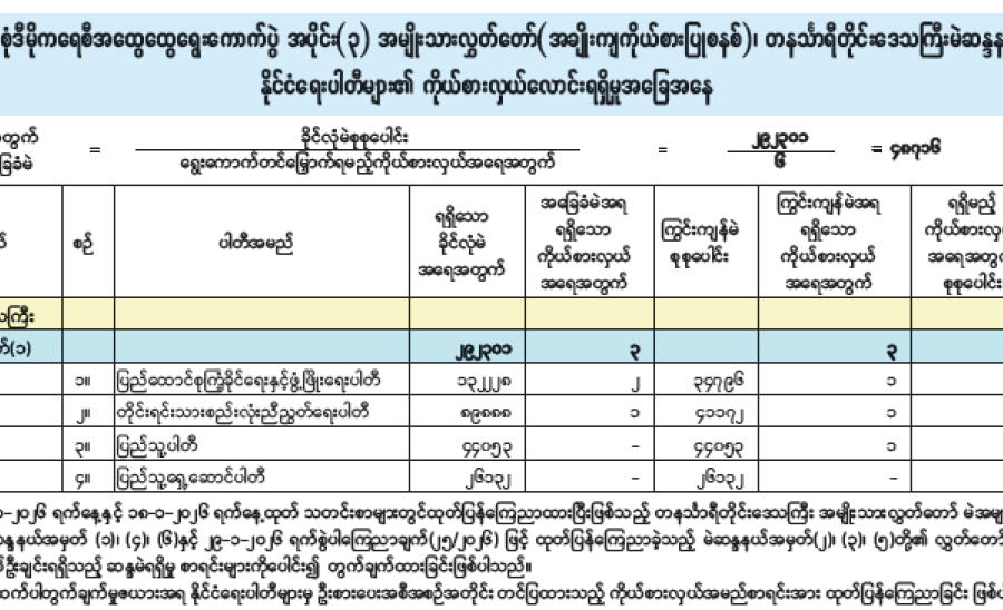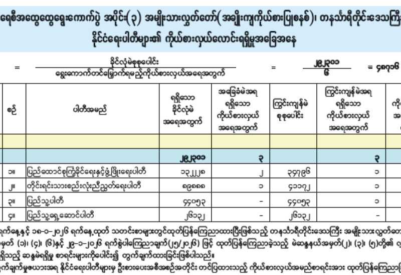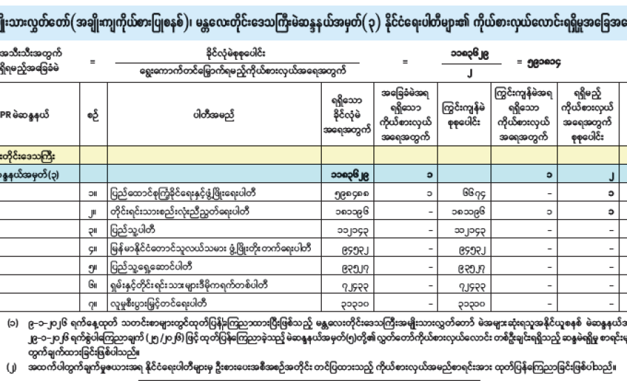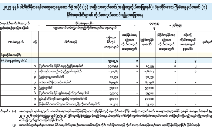 အမျိုးသားလွှတ်တော်(အချိုးကျကိုယ်စားပြုစနစ်)၊ ပဲခူးတိုင်းဒေသကြီးမဲဆန္ဒနယ်အမှတ်(၂) နိုင်ငံရေးပါတီများ၏ ကိုယ်စားလှယ်လောင်းရရှိမှုအခြေအနေ