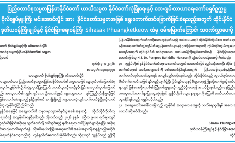 Apr 06, 2026ဧပြီလ ၃ ရက်မှာ ပြည်ပအခြေစိုက် သတင်းဌာနတစ်ခုဖြစ်တဲ့ CNA သတင်းဌာနက မြန်မာနိုင်ငံရဲ့ နိုင်ငံရေးဖြစ်ပေါ်တိုးတက်မှုများနဲ့ပတ်သက်ပြီး အရှိတရားကို မျက်ကွယ်ပြုကာ “မြန်မာစစ်ခေါင်းဆောင် ဦးမင်းအောင်လှိုင်အား စစ်တပ်လိုလားသော လွှတ်တော်ကသမ္မတအဖြစ် ရွေးချယ်တင်မြှောက်” (Myanmar junta chief Min Aung Hlaing elected president by pro-military parliament) ဆိုတဲ့ ခေါင်းစဉ်နဲ့ ‘‘၂၀၂၁ ခုနှစ်၊ ဖေဖော်ဝါရီလတွင် အရပ်သားအစိုးရထံမှ အာဏာသိမ်းယူခဲ့ကြောင်း၊ ၂၀၂၅ ရွေးကောက်ပွဲသည် အဓိကအတိုက်အခံအင်အားစုများ ပါဝင်ခွင့်မရဘဲ ကျင်းပခဲ့ခြင်းဖြစ်ပြီး နိုင်ငံတကာအသိုင်းအဝိုင်းကလည်း ထိုရွေးကောက်ပွဲကို “တရားမျှတမှုမရှိသောပြပွဲ” အဖြစ် ဝေဖန်ရှုတ်ချလျက်ရှိကြောင်း၊ အင်အားကြီးမားသော ပြည်ထောင်စုကြံ့ခိုင်ရေးနှင့် ဖွံ့ဖြိုးရေးပါတီမှ လွှတ်တော်ကိုယ်စားလှယ်များနှင့် စစ်တပ်မှ ခန့်အပ်ထားသော တပ်မတော်သား လွှတ်တော် ကိုယ်စားလှယ်များပူးပေါင်းကာ ဦးမင်းအောင်လှိုင်ကို ထောက်ခံခဲ့ကြတာကြောင့် မဲအပြတ်အသတ်ဖြင့် အနိုင်ရရှိခဲ့ခြင်းဖြစ်ကြောင်း” စသည်ဖြင့် မဟုတ်မမှန်ရေးသားဖော်ပြခဲ့တာကို တွေ့ရပါတယ်။