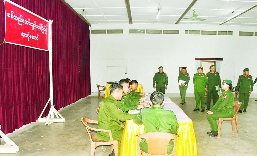 ၂၀၂၆ ခုနှစ် (၈၁) နှစ်မြောက် တပ်မတော်နေ့ အထိမ်းအမှတ် စစ်သည်တော်ကျင့်ဝတ်ပြိုင်ပွဲကို ယနေ့နံနက်ပိုင်းတွင် ရန်ကုန်တိုင်းစစ်ဌာနချုပ် အနော်ရထာခန်းမ၌ ပြုလုပ်ရာ အရာရှိ၊ အရာခံ၊ အကြပ်အဆင့် စစ်သည်တော်ကျင့်ဝတ်ရေးဖြေနှင့် တပ်သားအဆင့် ရေးဖြေ၊ နှုတ်ဖြေ ဖြေဆိုနေမှုများကို တိုင်းမှူး ဗိုလ်ချုပ် ပြည့်စုံလင်းနှင့် တာဝန်ရှိသူများက လိုက်လံကြည့်ရှုအားပေးကြ သည်။