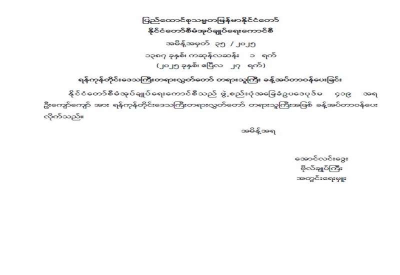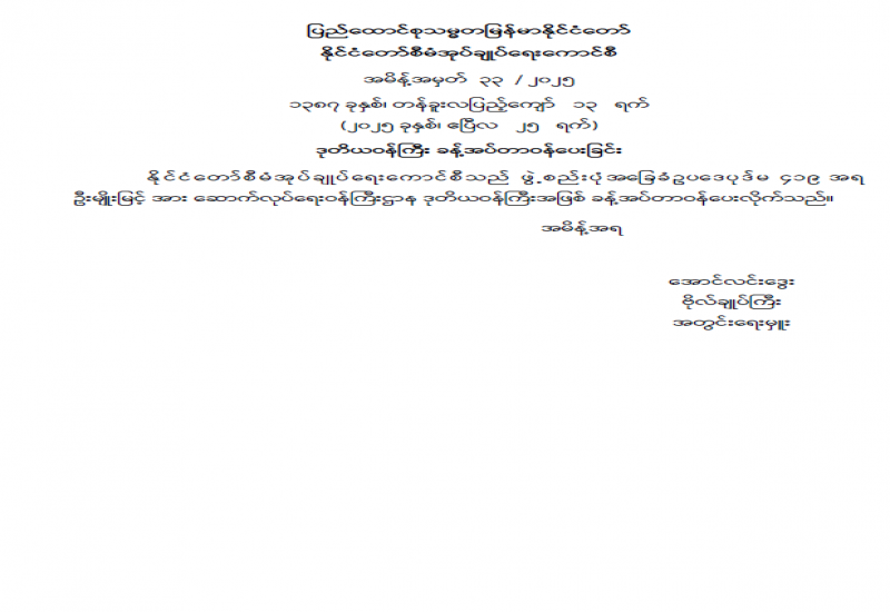ချင်းပြည်နယ်တရားလွှတ်တော် တရားသူကြီး ခန့်အပ်တာဝန်ပေးခြင်း