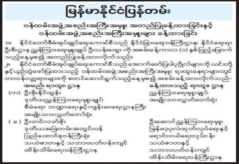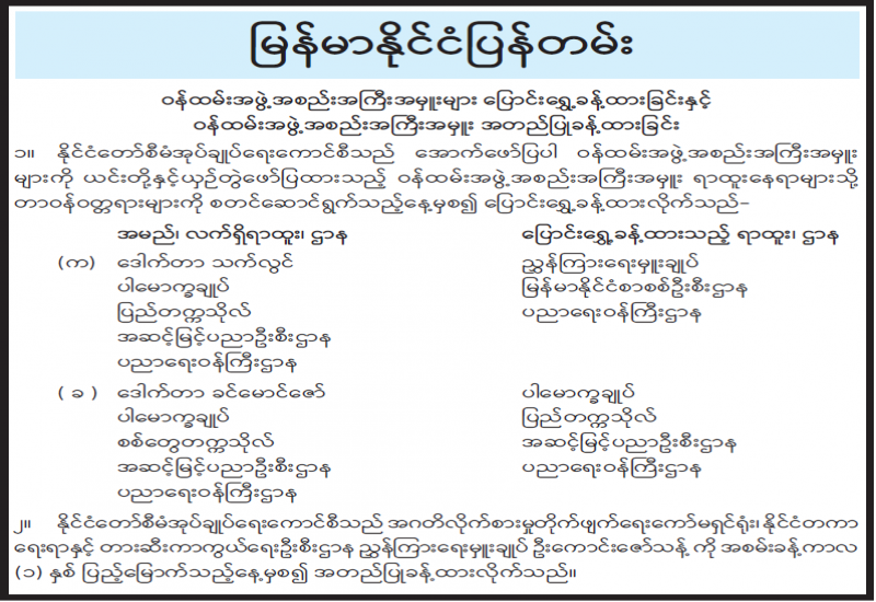 ဝန်ထမ်းအဖွဲ့အစည်းအကြီးအမှူးများ ပြောင်းရွှေ့ခန့်ထားခြင်းနှင့် ဝန်ထမ်းအဖွဲ့အစည်းအကြီးအမှူး အတည်ပြုခန့်ထားခြင်း