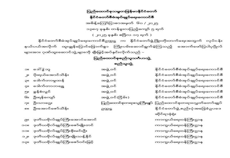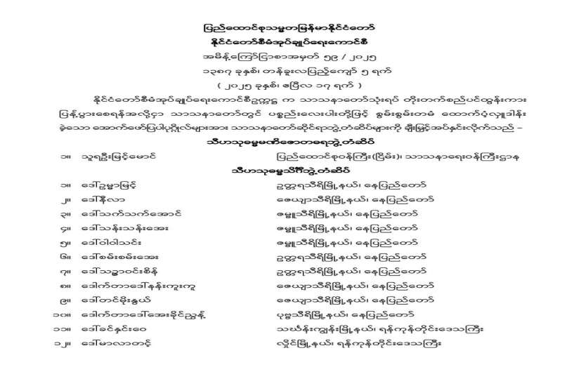 နိုင်ငံရေးပါတီ (၂၉)ပါတီက ပူးတွဲသဘောထားထုတ်ပြန်ကြေညာ