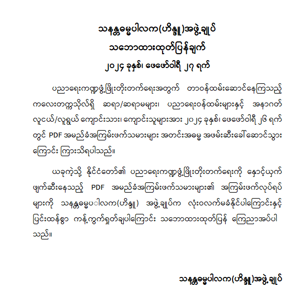 နိုင်ငံတော်အစိုးရ၏ ကြေညာချက်များ