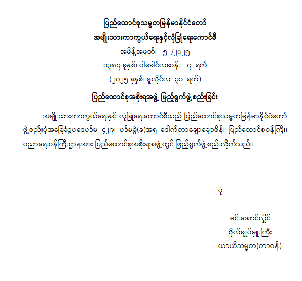 ဝန်ကြီးဌာန ကြေညာချက်များ