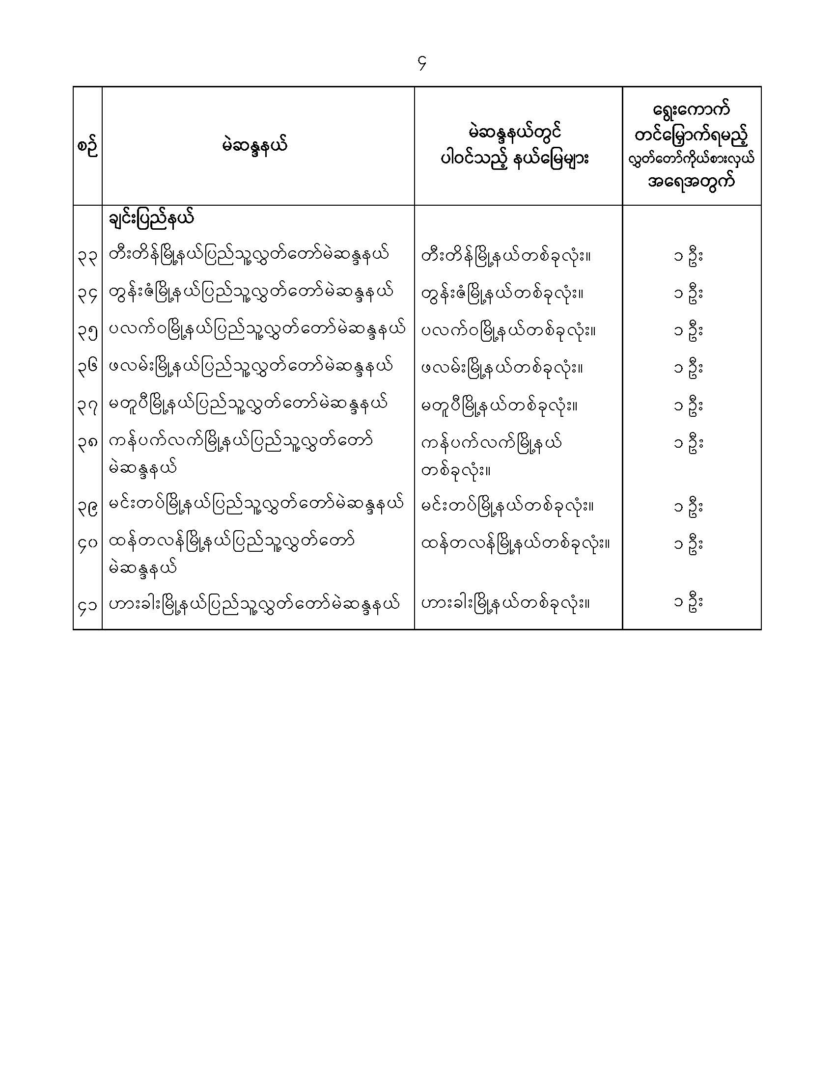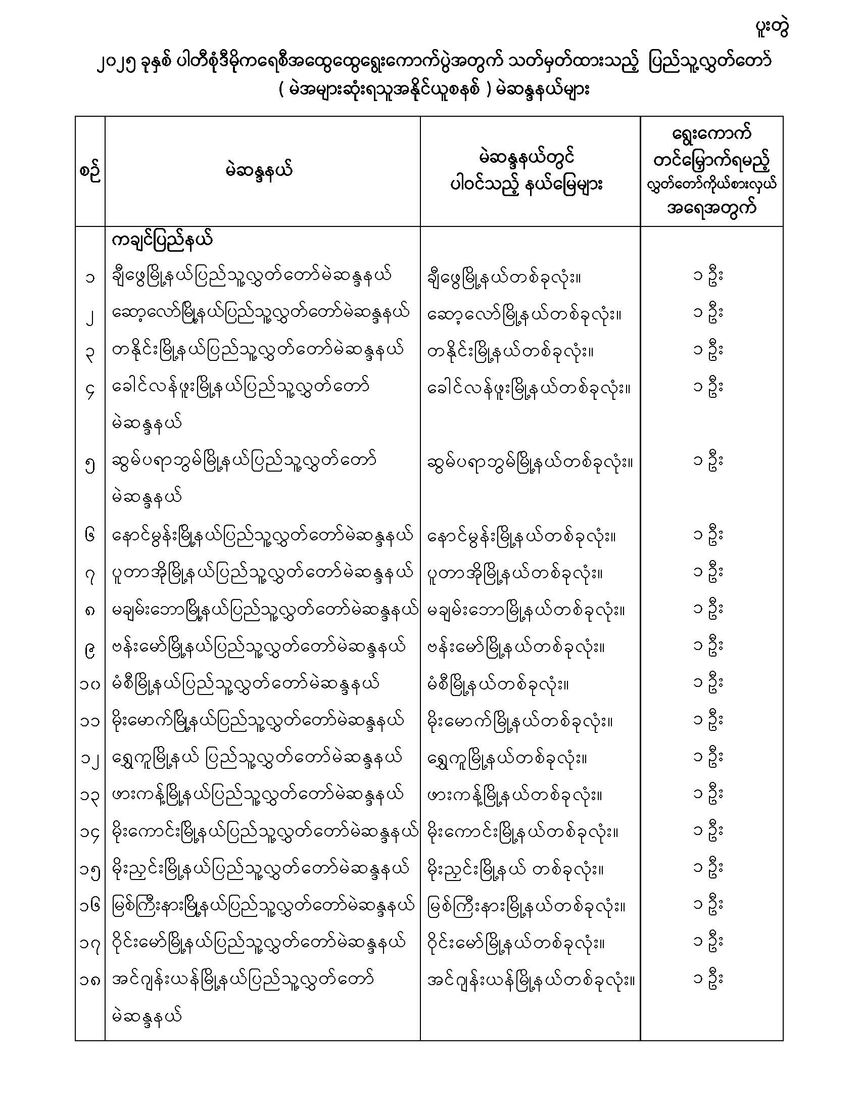 ဝန်ကြီးဌာန ကြေညာချက်များ