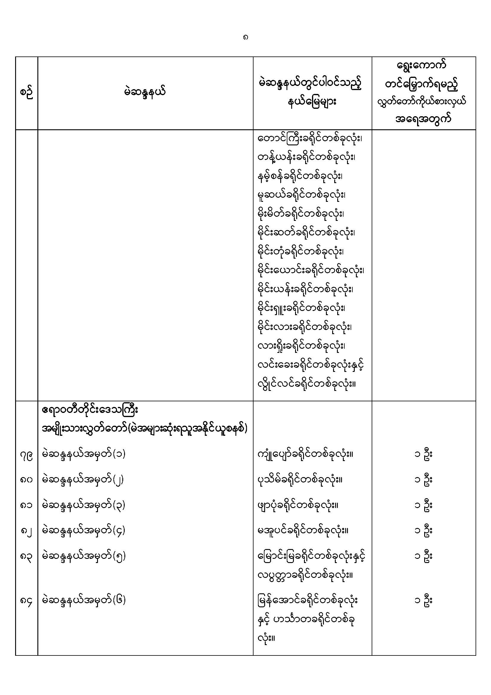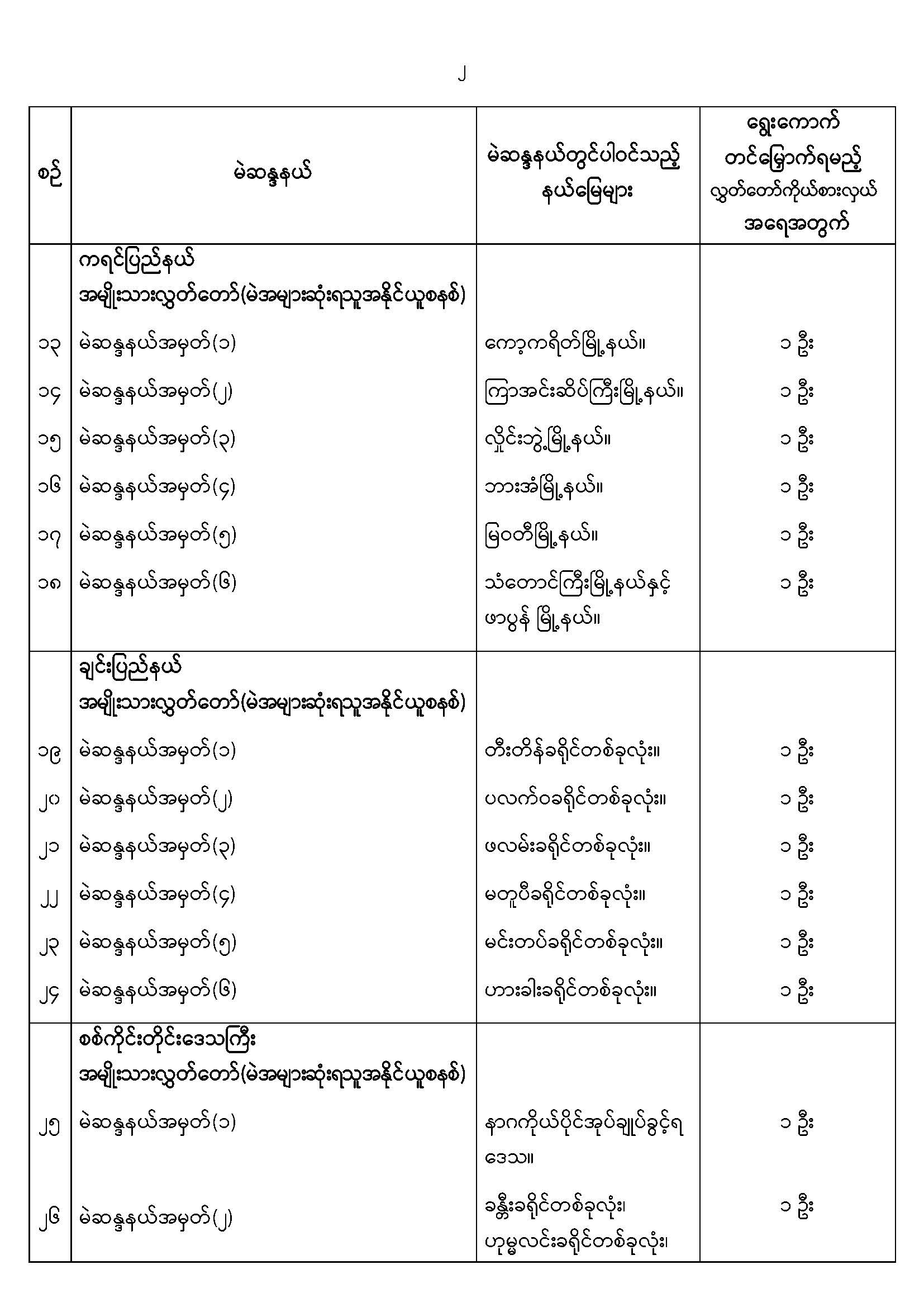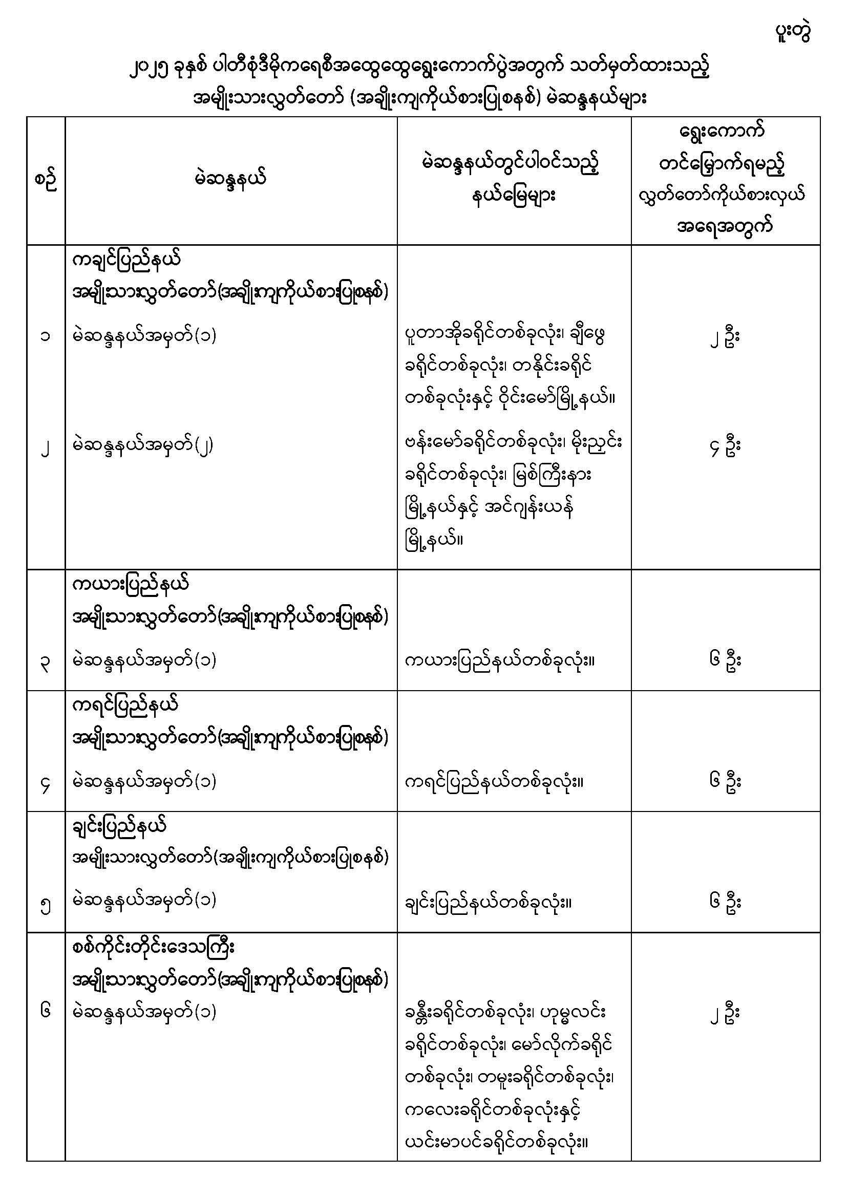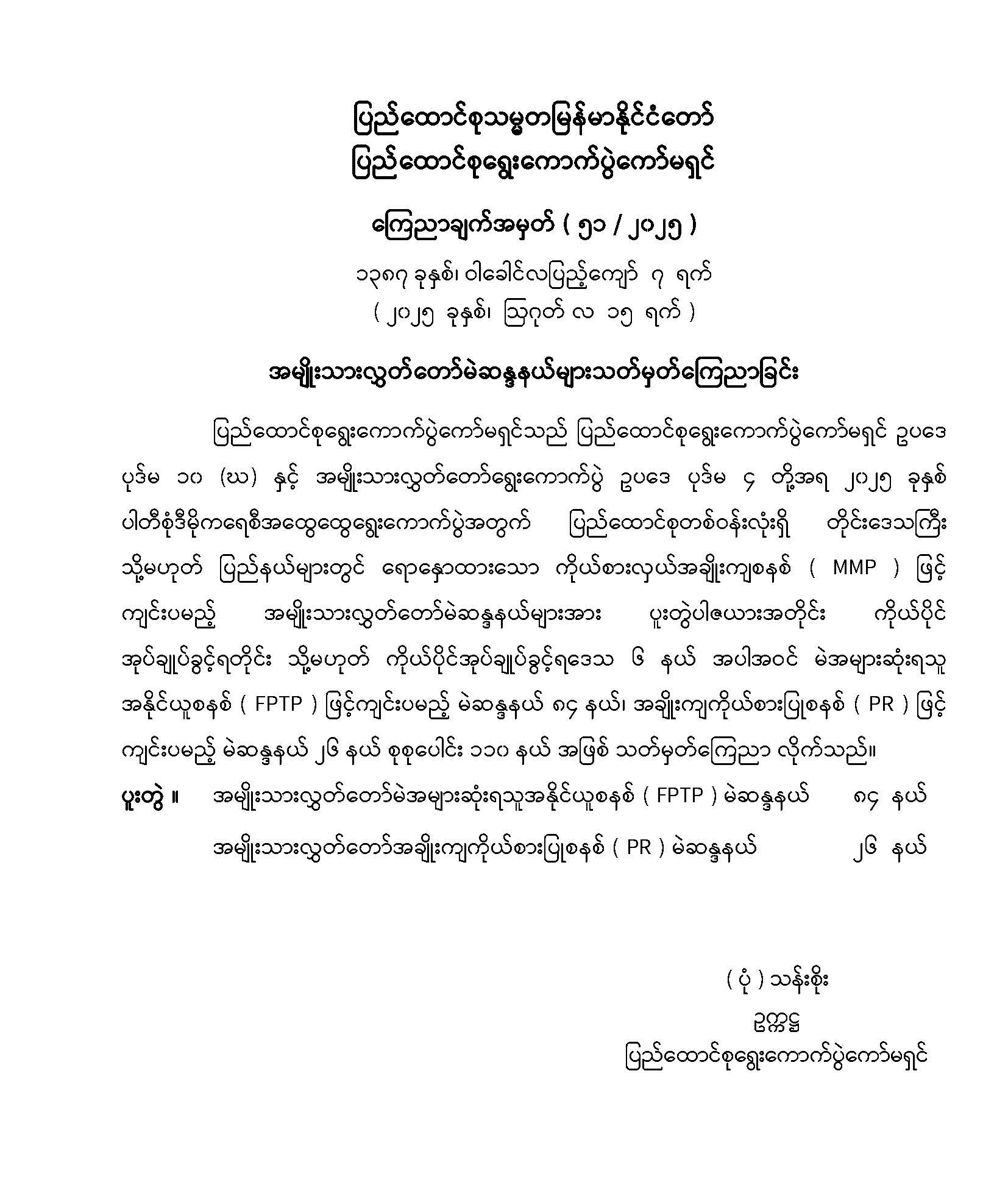 အမျိုးသားလွှတ်တော်မဲဆန္ဒနယ်များ သတ်မှတ်ကြေညာခြင်း