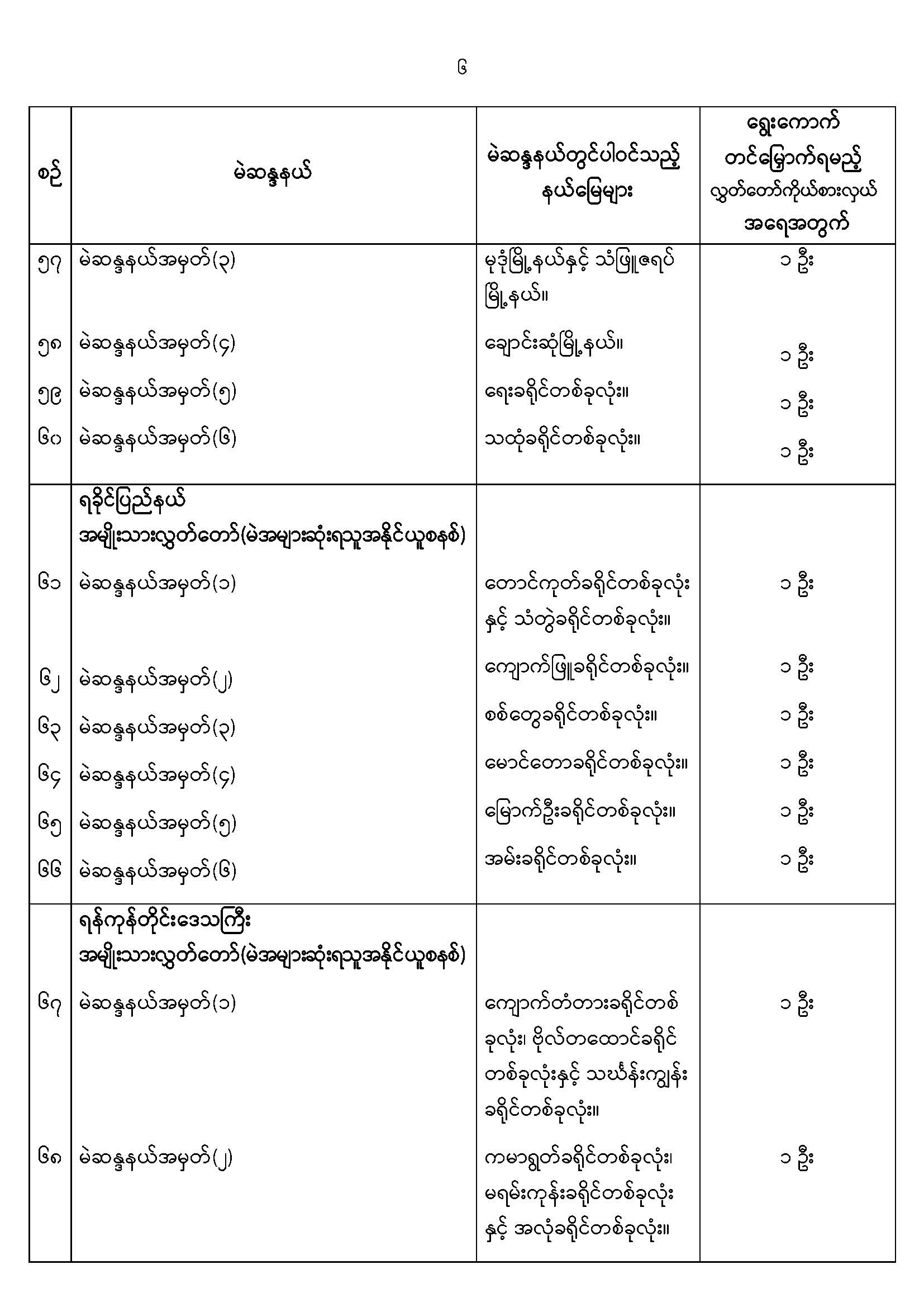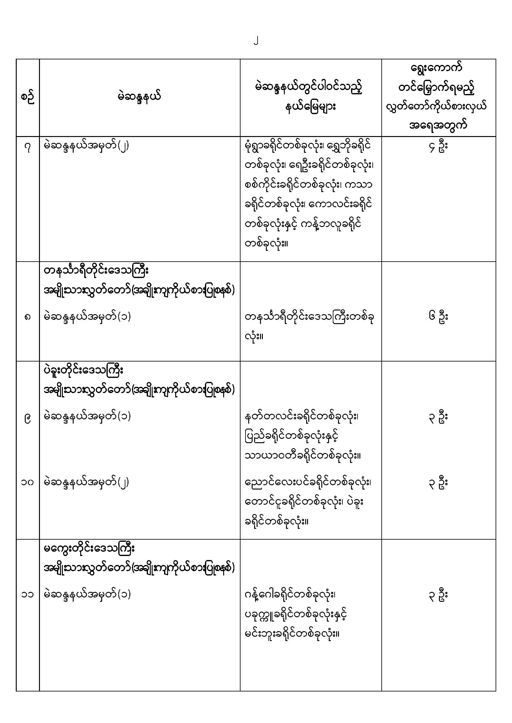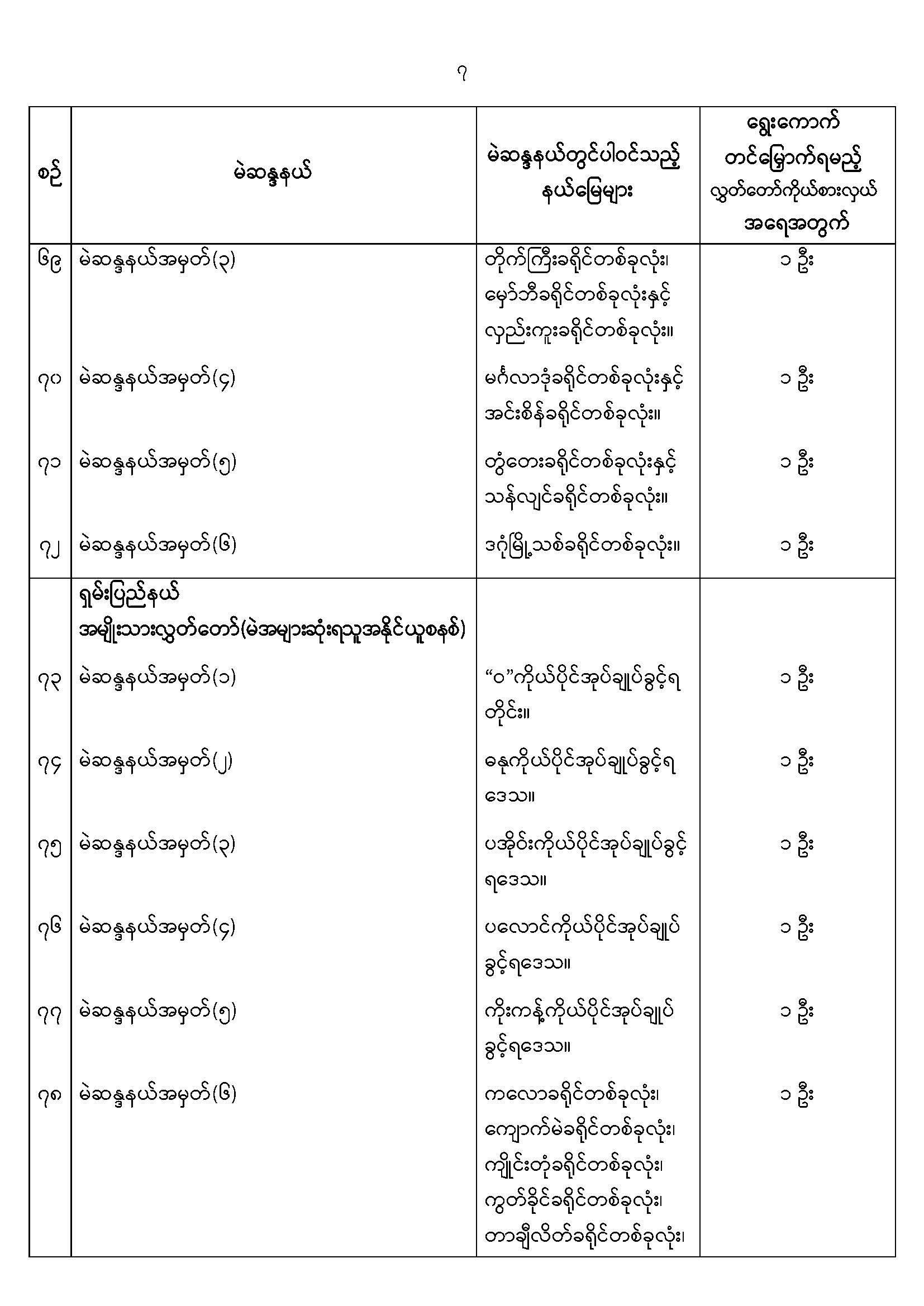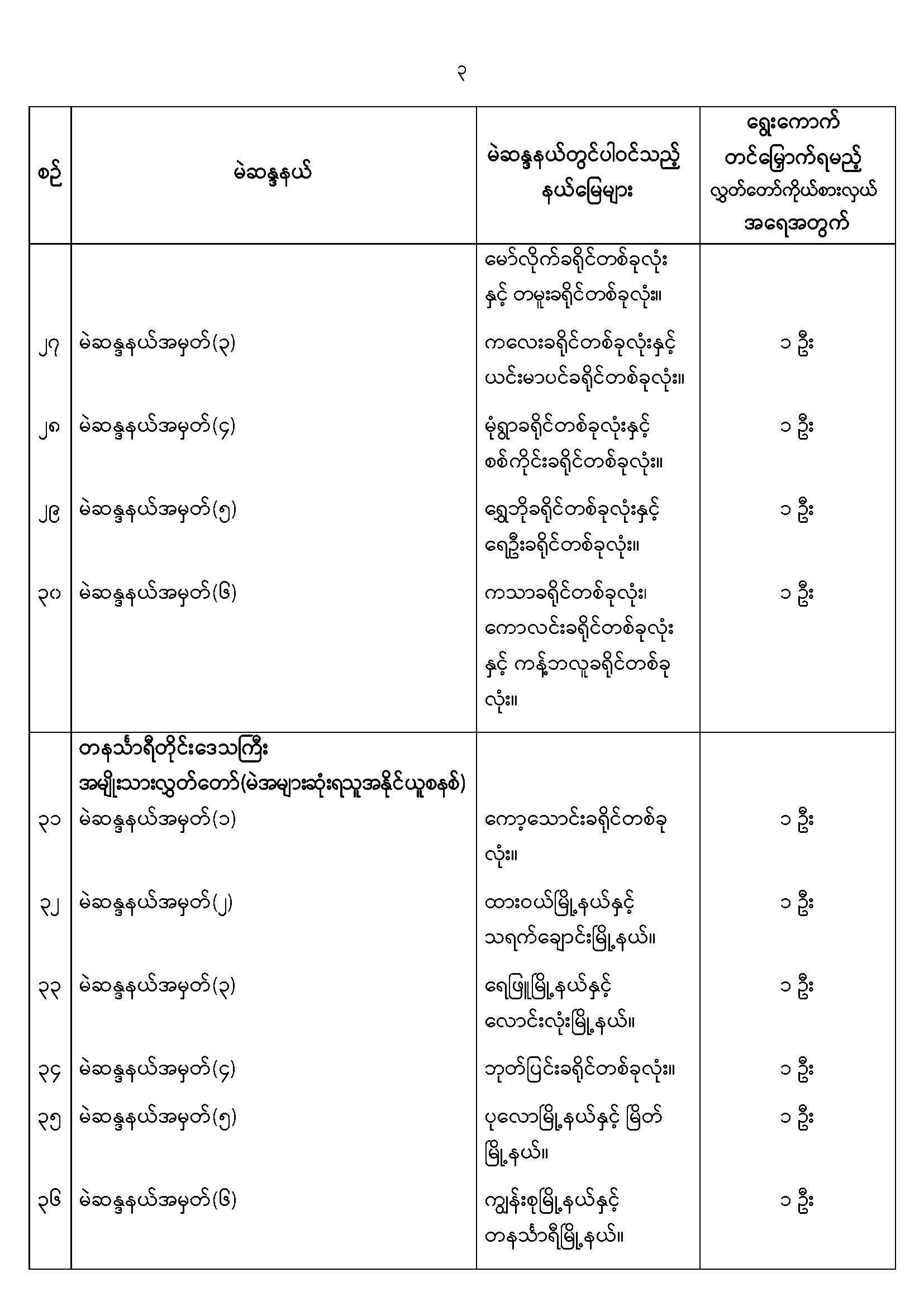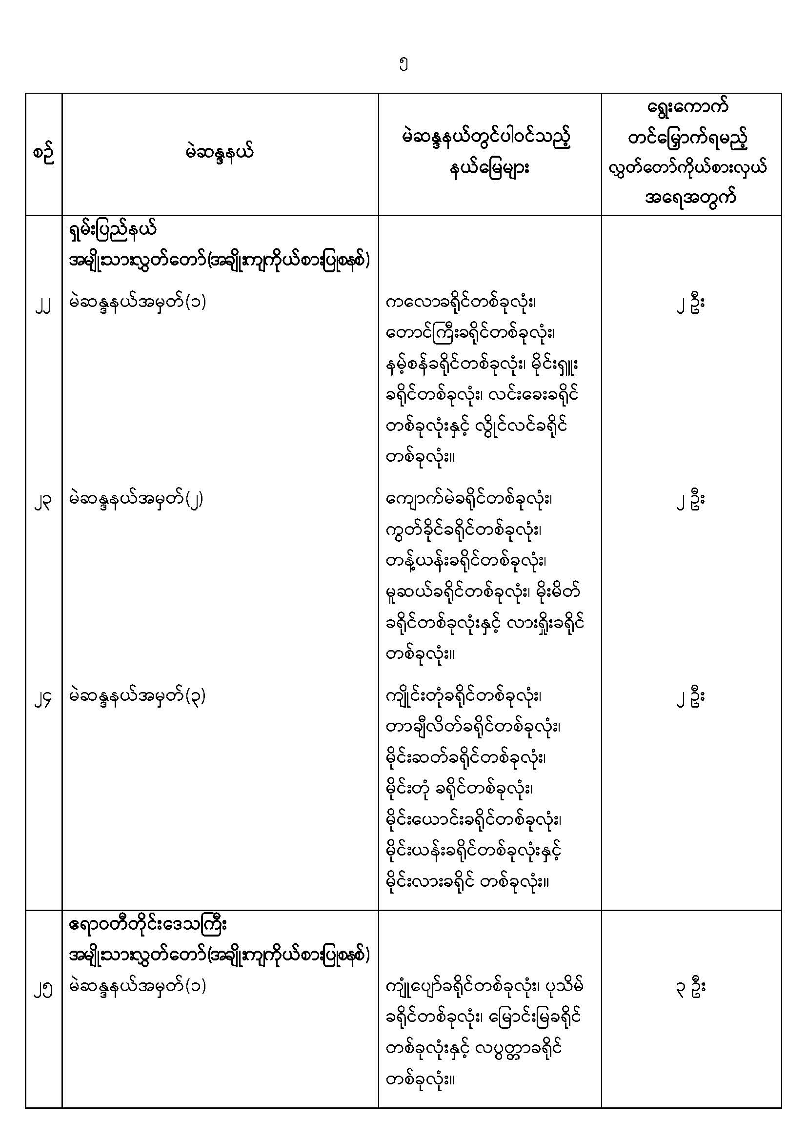 အမျိုးသားလွှတ်တော်မဲဆန္ဒနယ်များ သတ်မှတ်ကြေညာခြင်း