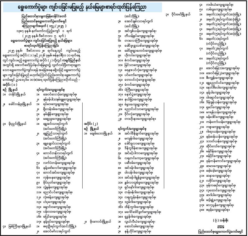 ရွေးကောက်ပွဲများ ကျင်းပခြင်းမပြုမည့် နယ်မြေများစာရင်းထုတ်ပြန်ကြေညာ