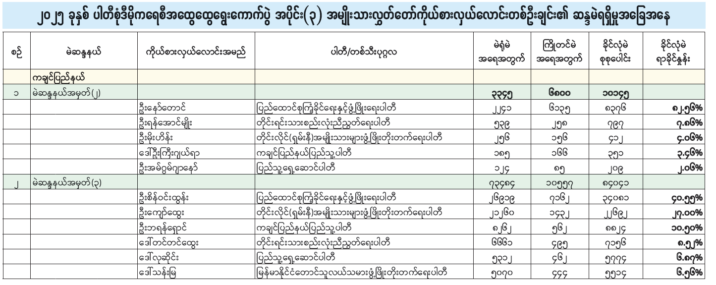 ၂၀၂၅ ခုနှစ် ပါတီစုံဒီမိုကရေစီအထွေထွေရွေးကောက်ပွဲ အပိုင်း(၃) အမျိုးသားလွှတ်တော်ကိုယ်စားလှယ်လောင်းတစ်ဦးချင်း၏ ဆန္ဒမဲရရှိမှုအခြေအနေ 01/30/2026