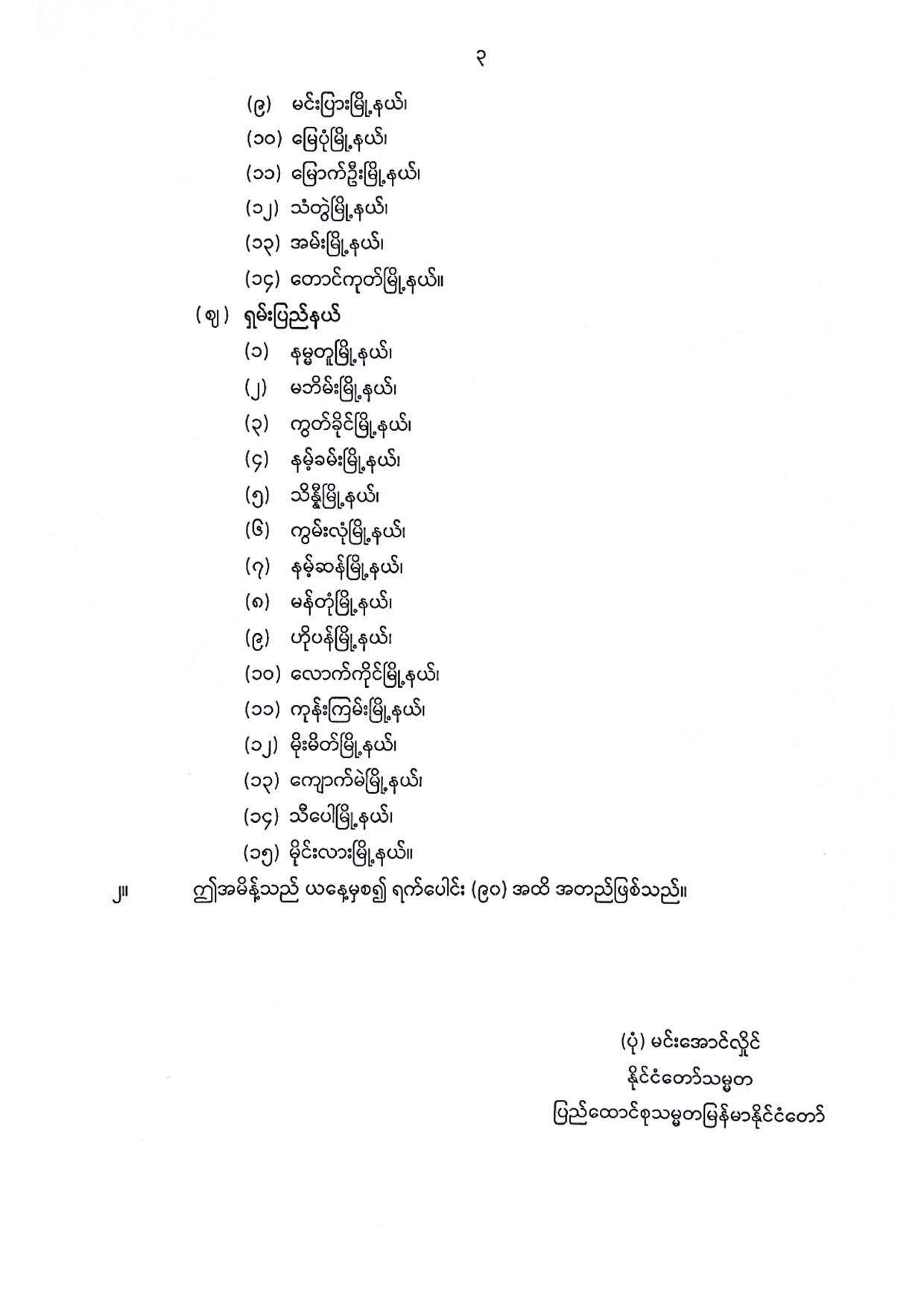 ဝန်ကြီးဌာန ကြေညာချက်များ