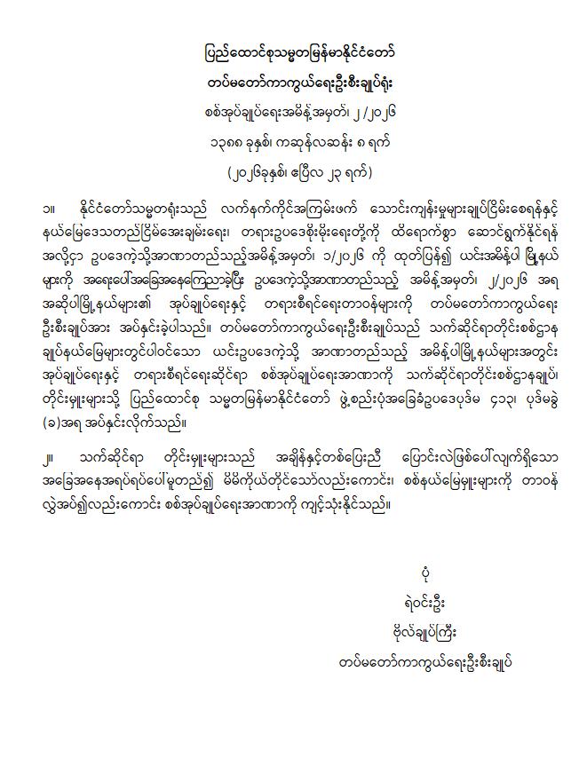 နိုင်ငံတော်အစိုးရ၏ ကြေညာချက်များ