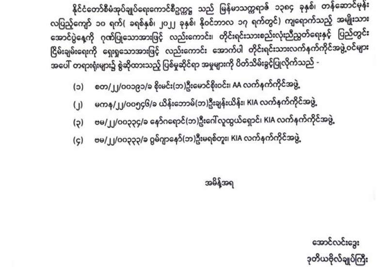 ပြည်ထောင်စုသမ္မတမြန်မာနိုင်ငံတော် နိုင်ငံတော်စီမံအုပ်ချုပ်ရေးကောင်စီ အမိန့်ကြော်ငြာစာအမှတ် ၂၂၀ /၂၀၂၂