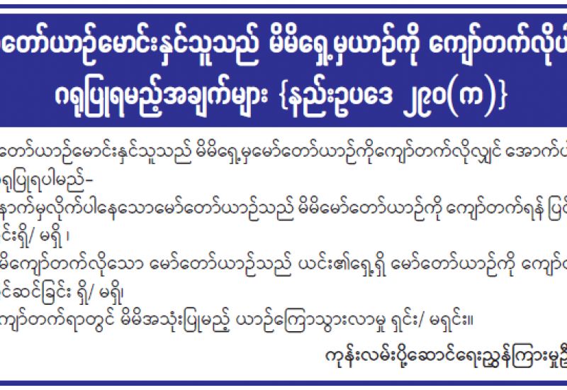 မော်တော်ယာဉ်မောင်းနှင်သူသည် မိမိရှေ့မှယာဉ်ကို ကျော်တက်လိုပါက ဂရုပြုရမည့်အချက်များ {နည်းဥပဒေ ၂၉၀(က)}