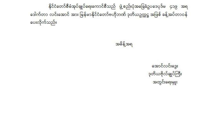 ပြည်ထောင်စုသမ္မတမြန်မာနိုင်ငံ၊ နိုင်ငံခြားရေးဝန်ကြီးဌာနသည် ၂၀၂၂ ခုနှစ်၊ မေလ ၁၂ ရက်နေ့မှ ၁၃ ရက်နေ့အထိ အမေရိကန်ပြည်ထောင်စု ဝါရှင်တန်ဒီစီမြို့တွင် ကျင်းပခဲ့သည့် အာဆီယံအမေရိကန် အထူးထိပ်သီးအစည်းအဝေး ကျင်းပခဲ့သည့်ကိစ္စနှင့် ပူးတွဲထုတ်ပြန်ကြေညာချက်ကို မှတ်သားထားပါသည်။