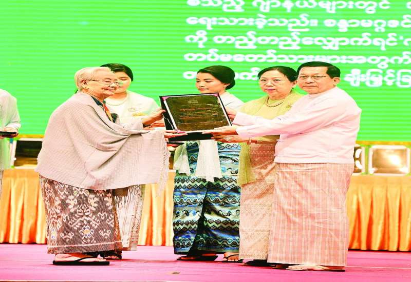 ၂၀၂၄ ခုနှစ်အတွက် အမျိုးသားစာပေတစ်သက်တာဆု၊ အမျိုးသားစာပေဆုနှင့် စာပေဗိမာန်စာမူဆု ဆုနှင်းသဘင်အခမ်းအနားကို ယနေ့နံနက်ပိုင်းတွင် နေပြည်တော်ရှိ အပြည်ပြည်ဆိုင်ရာကွန်ဗင်းရှင်းဗဟိုဌာန - ၁ ၌ ကျင်းပပြုလုပ်ရာ ပြည်ထောင်စုသမ္မတမြန်မာနိုင်ငံတော် ယာယီသမ္မတ နိုင်ငံတော်လုံခြုံရေးနှင့်အေးချမ်းသာယာရေးကော်မရှင်ဥက္ကဋ္ဌ ဗိုလ်ချုပ်မှူးကြီး မင်းအောင်လှိုင်နှင့် ဇနီး ဒေါ်ကြူကြူလှတို့ တက်ရောက်၍ စာပေဆုများပေးအပ်ချီးမြှင့်သည်။