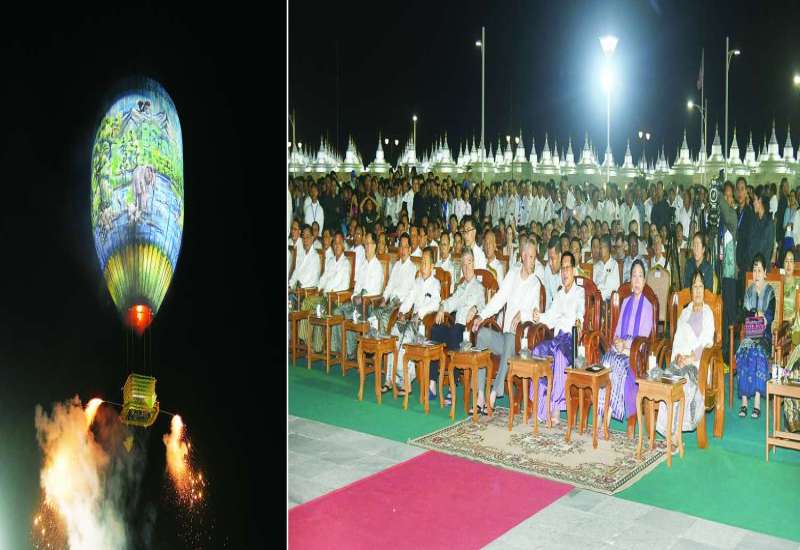 ပြည်ထောင်စုနယ်မြေ နေပြည်တော် ဒက္ခိဏသီရိမြို့နယ်ရှိ မာရဝိဇယဗုဒ္ဓရုပ်ပွားတော်မြတ်ကြီး ၂၀၂၅ ခုနှစ်၊ တန်ဆောင်တိုင်မီးထွန်းပွဲတော် မီးပုံးပျံလွှတ်တင်ပူဇော်ပြိုင်ပွဲနှင့် မသိုးရွှေကြာသင်္ကန်း ရက်လုပ်ပူဇော်ပြိုင်ပွဲ ဆုချီးမြှင့်ပွဲအခမ်းအနားကို ယနေ့ညပိုင်းတွင် မာရဝိဇယဗုဒ္ဓဥယျာဉ်တော် အတွင်းရှိ ရေပန်းရင်ပြင်တော်၌ စည်ကားသိုက်မြိုက်စွာဖြင့် ကျင်းပပြုလုပ်ရာ ပြည်ထောင်စုသမ္မတမြန်မာနိုင်ငံတော်ယာယီသမ္မတ နိုင်ငံတော်လုံခြုံရေးနှင့်အေးချမ်းသာယာရေးကော်မရှင်ဥက္ကဋ္ဌ ဗိုလ်ချုပ်မှူးကြီး မင်းအောင်လှိုင် တက်ရောက်ချီးမြှင့်သည်။