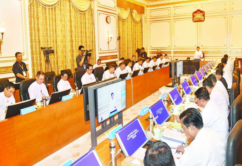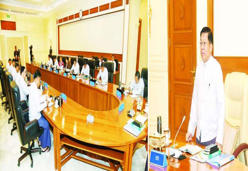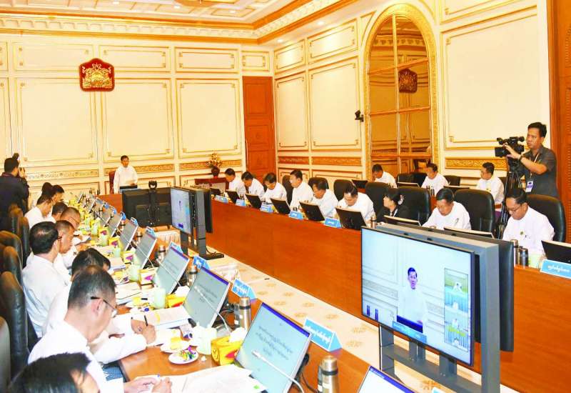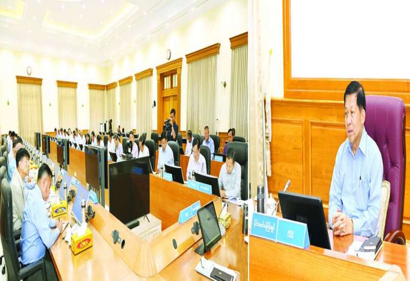 ပြည်ထောင်စုသမ္မတ မြန်မာနိုင်ငံတော် ပြည်ထောင်စုအစိုးရအဖွဲ့ လုပ်ငန်းညှိနှိုင်းအစည်းအဝေးကို ယနေ့နေ့လယ်ပိုင်းတွင် နိုင်ငံတော်စီမံအုပ်ချုပ်ရေးကောင်စီဥက္ကဋ္ဌရုံး အစည်းအဝေးခန်းမ၌ ကျင်းပပြုလုပ်ရာ နိုင်ငံတော်စီမံအုပ်ချုပ်ရေးကောင်စီဥက္ကဋ္ဌ နိုင်ငံတော်ဝန်ကြီးချုပ် ဗိုလ်ချုပ်မှူးကြီး မင်းအောင်လှိုင် တက်ရောက်အမှာစကားပြောကြားသည်။
