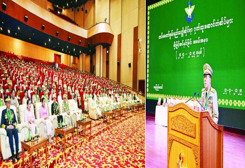 နိုင်ငံတော်စီမံအုပ်ချုပ်ရေးကောင်စီအစည်းအဝေးကို ယနေ့နံနက်ပိုင်းတွင် နေပြည်တော်ရှိ နိုင်ငံတော်စီမံအုပ်ချုပ်ရေးကောင်စီဥက္ကဋ္ဌရုံး အစည်းအဝေးခန်းမ၌ ကျင်းပပြုလုပ်ရာ နိုင်ငံတော်စီမံအုပ်ချုပ်ရေးကောင်စီဥက္ကဋ္ဌ နိုင်ငံတော်ဝန်ကြီးချုပ် ဗိုလ်ချုပ်မှူးကြီး မင်းအောင်လှိုင် တက်ရောက်အမှာစကားပြောကြားသည်။