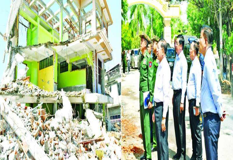 နိုင်ငံတော်စီမံအုပ်ချုပ်ရေးကောင်စီဥက္ကဋ္ဌ နိုင်ငံတော်ဝန်ကြီးချုပ် ဗိုလ်ချုပ်မှူးကြီးမင်းအောင်လှိုင်သည် ကောင်စီဝင်အဖွဲ့ဝင်များ၊ ပြည်ထောင်စုဝန်ကြီးများ၊ ကာကွယ်ရေးဦးစီးချုပ်ရုံးမှ အဆင့်မြင့် တပ်မတော်အရာရှိကြီးများနှင့် မန္တလေးတိုင်းဒေသကြီးဝန်ကြီးချုပ် ဦးမျိုးအောင်၊ အလယ်ပိုင်းတိုင်းစစ်ဌာနချုပ်တိုင်းမှူးနှင့် တာဝန်ရှိသူများ လိုက်ပါ၍ ယနေ့နံနက်ပိုင်းတွင် မန္တလေးတိုင်းဒေသကြီး ကျောက်ဆည်မြို့အတွင်း ငလျင်ဘေးဒဏ်ကြောင့် ထိခိုက်ပျက်စီးခဲ့သည့်အခြေအနေများနှင့် ပြန်လည်ထူထောင်ရေးလုပ်ငန်းများ ဆောင်ရွက်နေမှုအခြေအနေများကို သွားရောက်ကြည့်ရှုစစ်ဆေးသည်။
