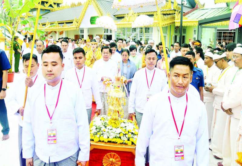 ရှမ်းပြည်နယ်(တောင်ပိုင်း)၊ တောင်ကြီးမြို့၊ ရွှေဘုန်းပွင့်စေတီတော်မြတ်ကြီးအား ရတနာစိန်ဖူးတော်၊ ငှက်မြတ်နားတော်၊ ရွှေထီးတော် တင်လှူပူဇော်ပွဲနှင့် ဗုဒ္ဓါဘိသေက အနေကဇာတင် မဟာမင်္ဂလာအခမ်းအနားကို ယနေ့နံနက်ပိုင်းတွင် ကျင်းပပြုလုပ်ရာ နိုင်ငံတော်ဩဝါဒါစရိယ၊ ညောင်ရွှေမြို့နယ်၊ ပထမမိုင်းသောက်ပရိယတ္တိစာသင်တိုက် ပဓာနနာယက အဘိဓဇမဟာရဋ္ဌဂုရု၊ အဘိဓဇအဂ္ဂမဟာသဒ္ဓမ္မဇောတိက ဘဒ္ဒန္တသုမင်္ဂလာဘိဝံသ ဆရာတော်ကြီး အမှူးပြုသည့် ဆရာတော်၊ သံဃာတော် အရှင်သူမြတ်များ ကြွရောက်ချီးမြှင့်တော်မူကြသည်။