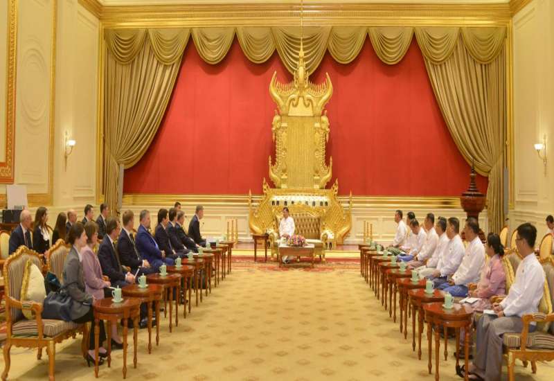 နိုင်ငံတော်စီမံအုပ်ချုပ်ရေးကောင်စီဥက္ကဋ္ဌ နိုင်ငံတော်ဝန်ကြီးချုပ် ဗိုလ်ချုပ်မှူးကြီး မင်းအောင်လှိုင်ထံသို့ ရုရှားဖက်ဒရေးရှင်းနိုင်ငံ၊ စီးပွားရေးဖွံ့ဖြိုးတိုးတက်မှုဝန်ကြီးဌာန၊ ဝန်ကြီး H.E. Maxim RESHETNIKOV ဦးဆောင်သည့်အဖွဲ့ဝင်များက ယနေ့မွန်းလွဲပိုင်းတွင် နိုင်ငံတော်စီမံအုပ်ချုပ်ရေးကောင်စီဥက္ကဋ္ဌရုံး၊ သံတမန်ဆောင်ဧည့်ခန်းမ၌ လာရောက်ဂါရဝပြုတွေ့ဆုံသည်။