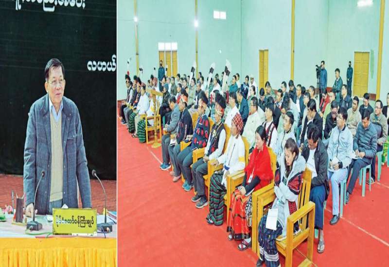 နာဂကိုယ်ပိုင်အုပ်ချုပ်ခွင့်ရဒေသ ဖွံ့ဖြိုးတိုးတက်ရေး အထူးအစည်းအဝေးကို ယနေ့နံနက်ပိုင်းတွင် နာဂကိုယ်ပိုင်အုပ်ချုပ်ခွင့်ရဒေသ၊ လဟယ်မြို့၊ မာလာတောင် အားကစားခန်းမ၌ ကျင်းပပြုလုပ်ရာ နိုင်ငံတော်စီမံအုပ်ချုပ်ရေးကောင်စီဥက္ကဋ္ဌ နိုင်ငံတော်ဝန်ကြီးချုပ် ဗိုလ်ချုပ်မှူးကြီး မင်းအောင်လှိုင် တက်ရောက်၍ နာဂကိုယ်ပိုင်အုပ်ချုပ်ခွင့်ရဒေသ ဖွံ့ဖြိုးတိုးတက်ရေးဆိုင်ရာများကို ဆွေးနွေးမှာကြားသည်။