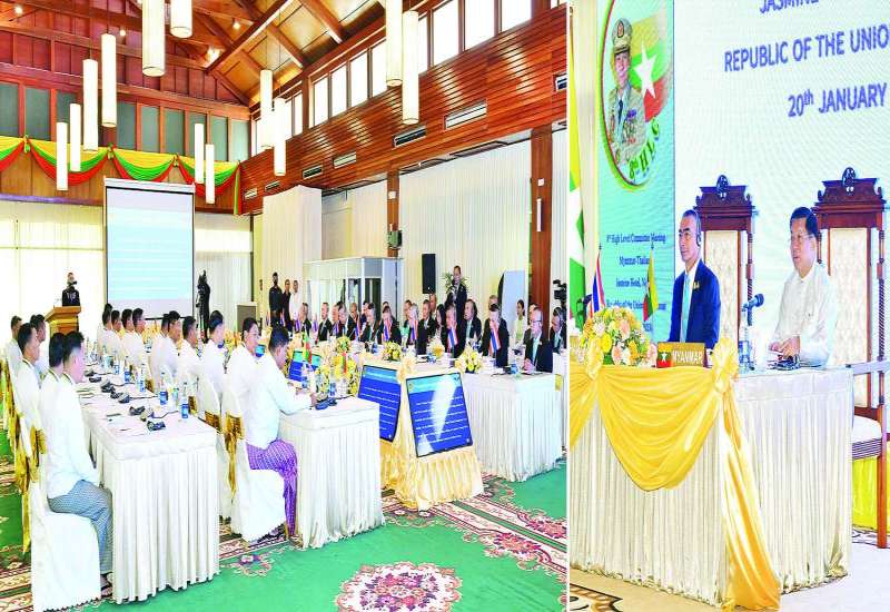 မြန်မာနိုင်ငံ၌ အိမ်ရှင်အဖြစ်လက်ခံကျင်းပပြုလုပ်သည့် (၈)ကြိမ်မြောက် မြန်မာ-ထိုင်း တပ်မတော်နှစ်ရပ်အကြား အဆင့်မြင့်အရာရှိကြီးများအစည်းအဝေး 8th High Level Committee Meeting ကို ယနေ့နံနက်ပိုင်းတွင် ရခိုင်ပြည်နယ်၊ သံတွဲမြို့ရှိ Jasmine Ngapali Resort ၌ ကျင်းပပြုလုပ်သည်။