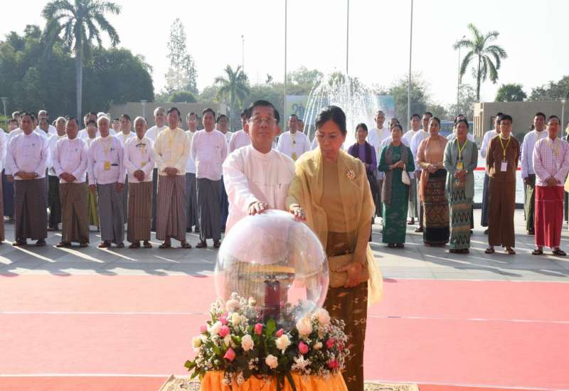 ၂၀၂၃ ခုနှစ် (၇၅) နှစ်မြောက် စိန်ရတုလွတ်လပ်ရေးနေ့ အထိမ်းအမှတ် လူငယ်နှင့်စာပေအနုပညာပြပွဲ အခမ်းအနားကို ယနေ့နံနက်ပိုင်းတွင် နေပြည်တော်ရှိ မြန်မာ အပြည်ပြည်ဆိုင်ရာ ကွန်ဗင်းရှင်းဗဟိုဌာန-၂ ၌ကျင်းပရာ နိုင်ငံတော်စီမံအုပ်ချုပ်ရေး ကောင်စီဥက္ကဋ္ဌ နိုင်ငံတော်ဝန်ကြီးချုပ် ဗိုလ်ချုပ်မှူးကြီး မင်းအောင်လှိုင်နှင့်ဇနီး ဒေါ်ကြူကြူလှတို့ တက်ရောက်ဖွင့်လှစ်ပေးသည်။