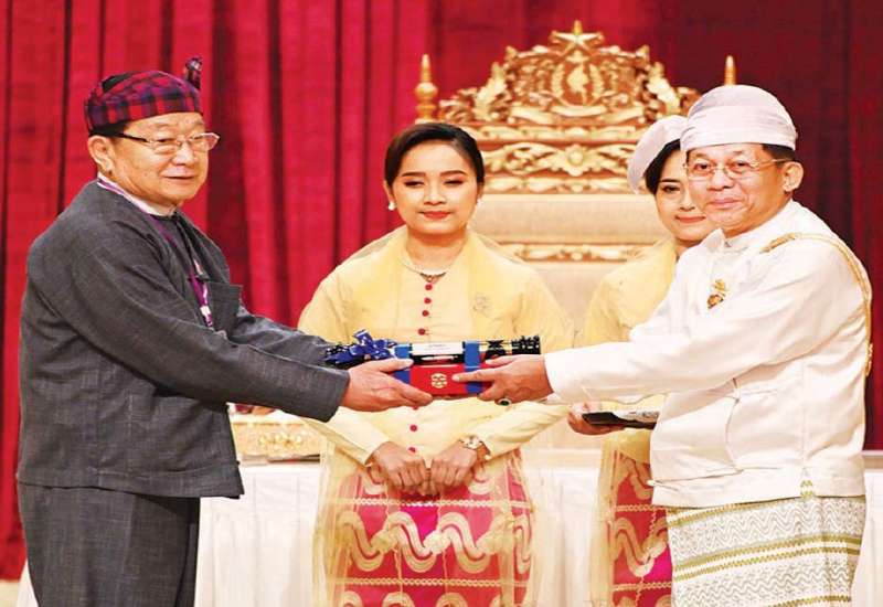 ၂၀၂၃ ခုနှစ် (၇၅)နှစ်မြောက် စိန်ရတုလွတ်လပ်ရေးနေ့အထိမ်းအမှတ် ဂုဏ်ထူးဆောင်ဘွဲ့များ ချီးမြှင့်အပ်နှင်းခြင်းအခမ်းအနားကို ယနေ့နံနက်ပိုင်းတွင် နိုင်ငံတော်စီမံအုပ်ချုပ်ရေးကောင်စီဥက္ကဋ္ဌရုံး သဘင်ဆောင်၌ကျင်းပရာ နိုင်ငံတော်စီမံအုပ်ချုပ်ရေးကောင်စီဥက္ကဋ္ဌ နိုင်ငံတော်ဝန်ကြီးချုပ် ဗိုလ်ချုပ်မှူးကြီး သတိုးမဟာသရေစည်သူ၊ သတိုးသီရိသုဓမ္မ မင်းအောင်လှိုင် တက်ရောက်အမှာစကားပြောကြားပြီး ဂုဏ်ထူးဆောင်ဘွဲ့များ ပေးအပ်ချီးမြှင့်သည်။