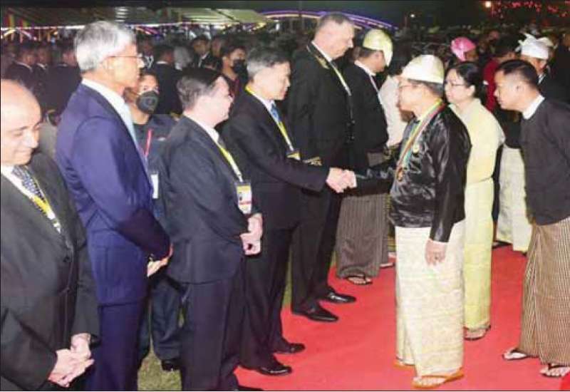 ၂၀၂၃ ခုနှစ်၊ ဇန်နဝါရီလ ၄ ရက်နေ့တွင် ကျရောက်သည့် (၇၅)နှစ်မြောက် စိန်ရတုလွတ်လပ်ရေးနေ့ ဂုဏ်ပြုအခမ်းအနားသို့ ပါဝင်တက်ရောက်ကြမည့် ခေတ်အဆက်ဆက် နိုင်ငံတော်တာဝန်ကို ထမ်းဆောင်ခဲ့ကြသည့် နိုင်ငံတော်အကြီးအကဲများနှင့် တပ်မတော်အရာရှိကြီးများ၏ မိသားစုဝင်များအား နိုင်ငံတော်စီမံအုပ်ချုပ်ရေးကောင်စီဥက္ကဋ္ဌ နိုင်ငံတော်ဝန်ကြီးချုပ် ဗိုလ်ချုပ်မှူးကြီးမင်းအောင်လှိုင်နှင့် ဇနီးဒေါ်ကြူကြူလှတို့သည် ယနေ့နံနက်ပိုင်းတွင် ၎င်းတို့ခေတ္တတည်းခိုနေထိုင်သည့် နေပြည်တော်ရှိဘုရင့်နောင် ဧည့်ရိပ်သာ၌ သွားရောက်တွေ့ ဆုံနှုတ်ဆက်သည်။