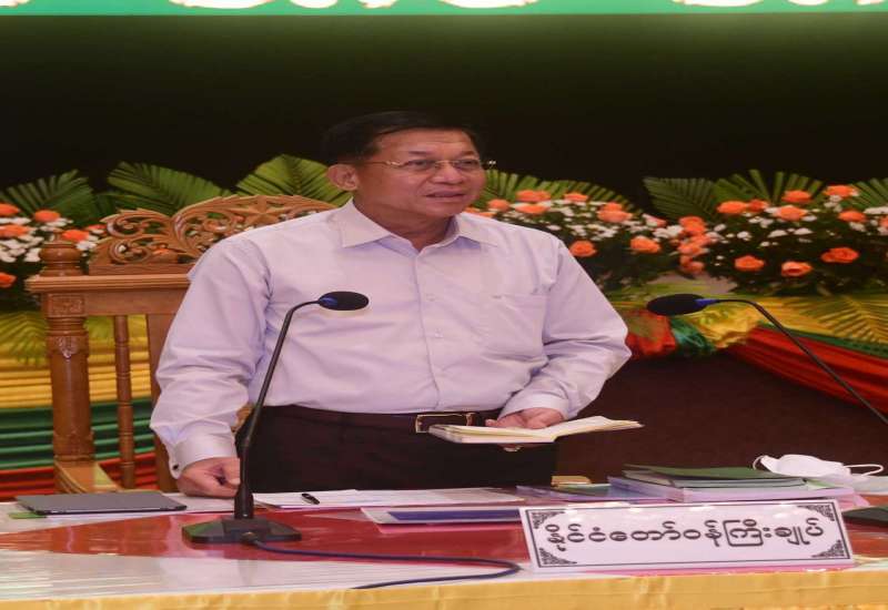 နိုင်ငံတော်စီမံအုပ်ချုပ်ရေးကောင်စီ အစည်းအဝေး(၈/၂၀၂၂)ကို ယနေ့မွန်းလွဲပိုင်းတွင် နေပြည်တော်ရှိ နိုင်ငံတော်စီမံအုပ်ချုပ်ရေးကောင်စီဥက္ကဋ္ဌရုံး အစည်းအဝေးခန်းမ၌ ကျင်းပပြုလုပ်ရာ နိုင်ငံတော်စီမံအုပ်ချုပ်ရေးကောင်စီဥက္ကဋ္ဌ နိုင်ငံတော်ဝန်ကြီးချုပ် ဗိုလ်ချုပ်မှူးကြီး မင်းအောင်လှိုင် တက်ရောက်အမှာစကား ပြောကြားသည်။