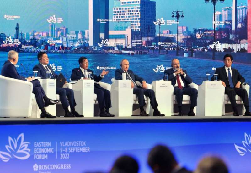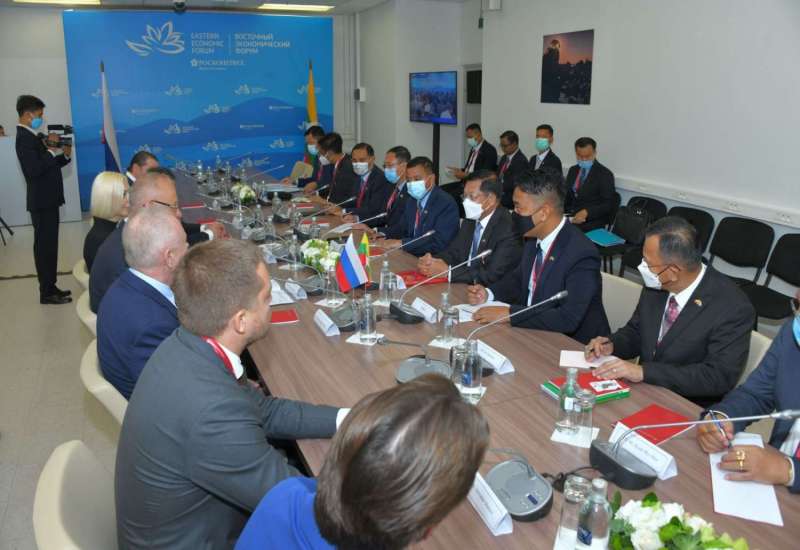 (၇) ကြိမ်မြောက် အရှေ့ဖျားစီးပွားရေးဖိုရမ် (The 7th Eastern Economic Forum-2022)ကို ရုရှားဖက်ဒရေးရှင်းနိုင်ငံ၊ ဗလာဒီဗော့စတော့ခ်မြို့ Far Eastern Federal University(FEFU) ၌ စက်တင်ဘာ ၅ ရက်နေ့တွင် စတင်ဖွင့်လှစ်ခဲ့ပြီး တွေ့ဆုံဆွေးနွေးမှုများ၊ နားလည်မှုစာချွန်လွှာ ရေးထိုးပွဲများ၊ တွေ့ဆုံမေးမြန်းမှုများကို ဆောင်ရွက်လျက်ရှိကြပြီး ကဏ္ဍပေါင်းစုံအလိုက် ပြခန်းများဖြင့်လည်း ခင်းကျင်းပြသထားသည်။