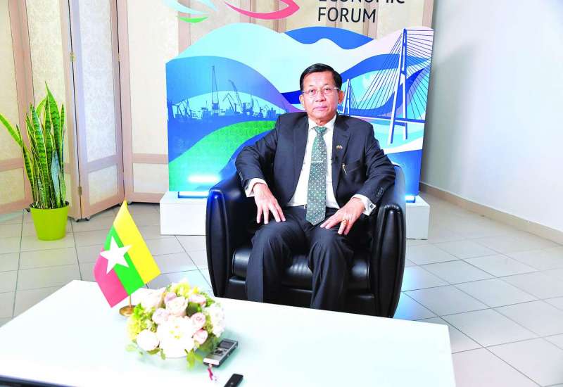 ရုရှားဖက်ဒရေးရှင်းနိုင်ငံတွင် ရောက်ရှိနေသည့် နိုင်ငံတော်စီမံအုပ်ချုပ်ရေး ကောင်စီဥက္ကဋ္ဌ နိုင်ငံတော်ဝန်ကြီးချုပ် ဗိုလ်ချုပ်မှူးကြီး မင်းအောင်လှိုင်သည် ယနေ့ဒေသစံတော်ချိန် နံနက်ပိုင်းတွင် ရုရှားဖက်ဒရေးရှင်းနိုင်ငံ၊ Rossiya Segodnya သတင်းအေဂျင်စီ၊ RIA သတင်းဌာနမှ အထူးသတင်းထောက် Ms. Kukushkina Tatiana အား ဗလာဒီဗော့စတော့ခ်မြို့ Far Eastern Federal University (FEFU)၌ တွေ့ဆုံ၍ သိရှိလိုသည့် မေးမြန်းမှုများကို လက်ခံဖြေကြားသည်။