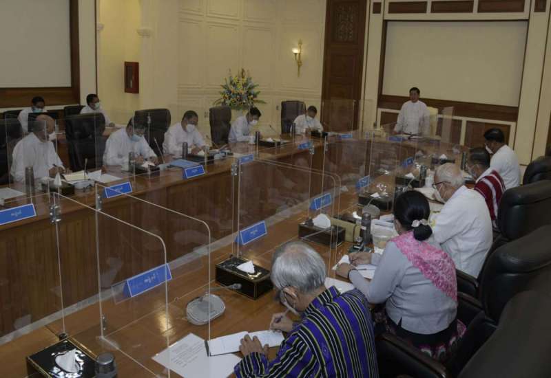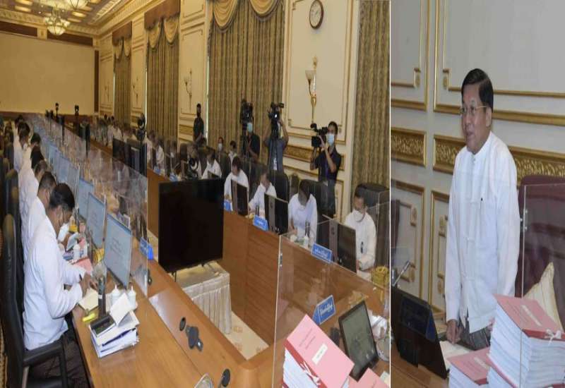 ပြည်ထောင်စုအစိုးရအဖွဲ့အစည်းအဝေး အမှတ်စဉ် (၅/၂၀၂၂)ကို ယနေ့မွန်းလွဲပိုင်းတွင် နေပြည်တော်ရှိ နိုင်ငံတော်စီမံအုပ်ချုပ်ရေးကောင်စီဥက္ကဋ္ဌရုံး အစည်းအဝေးခန်းမ၌ကျင်းပရာ နိုင်ငံတော်စီမံအုပ်ချုပ်ရေးကောင်စီဥက္ကဋ္ဌ နိုင်ငံတော်ဝန်ကြီးချုပ် ဗိုလ်ချုပ်မှူးကြီး မင်းအောင်လှိုင် တက်ရောက်အမှာစကားပြောကြားသည်။